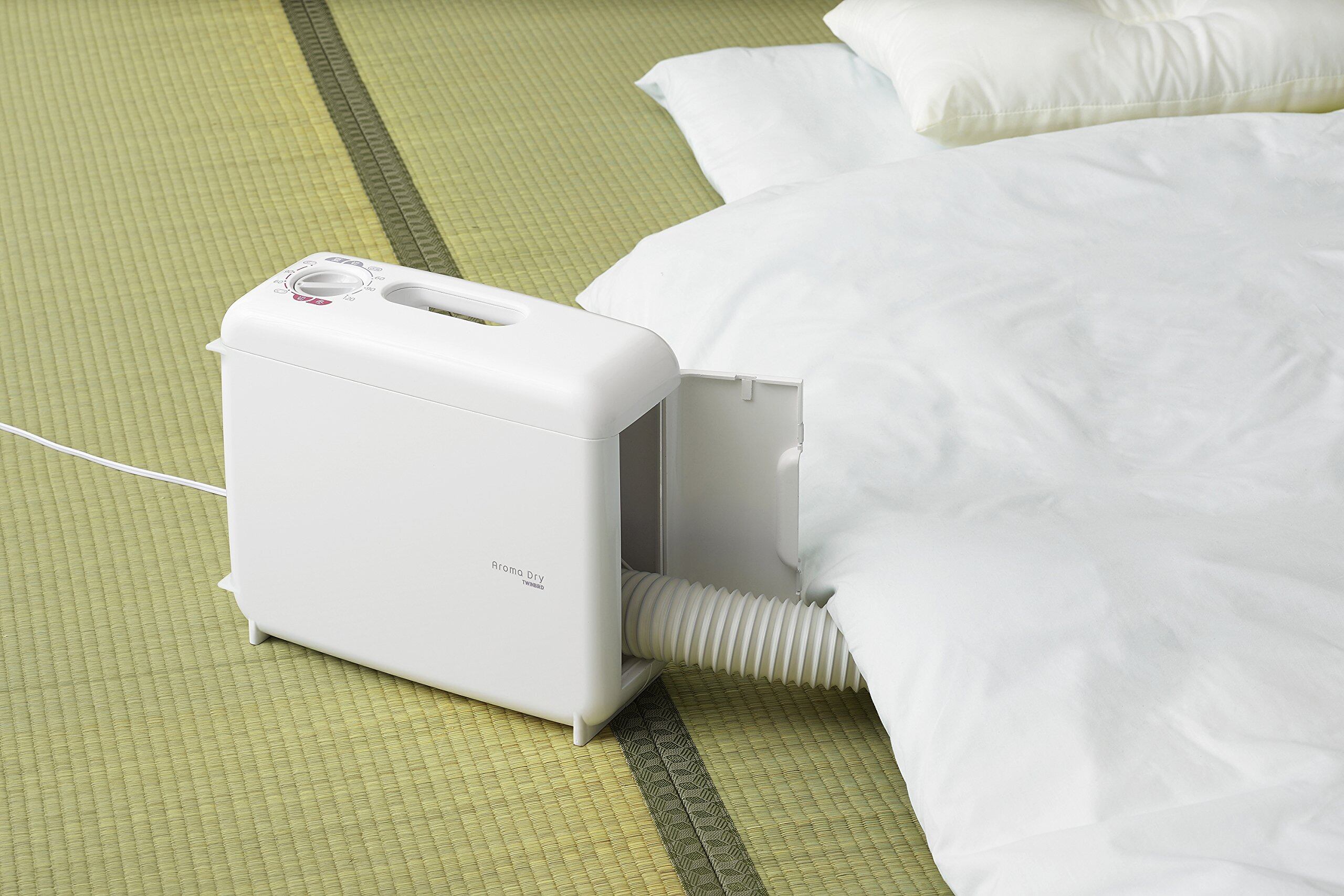 FD-4149Wは、エアマットなしで布団乾燥ができる、さしこむだけのふとん乾燥機。縦置き、横置きの使い分けで、ベットと床敷どちらにもお使いいただけます。モードや時間にダイヤルを合わせれば準備完了。操作もとても簡単です。付属のアロマケースで、布団の香りつけもできます。