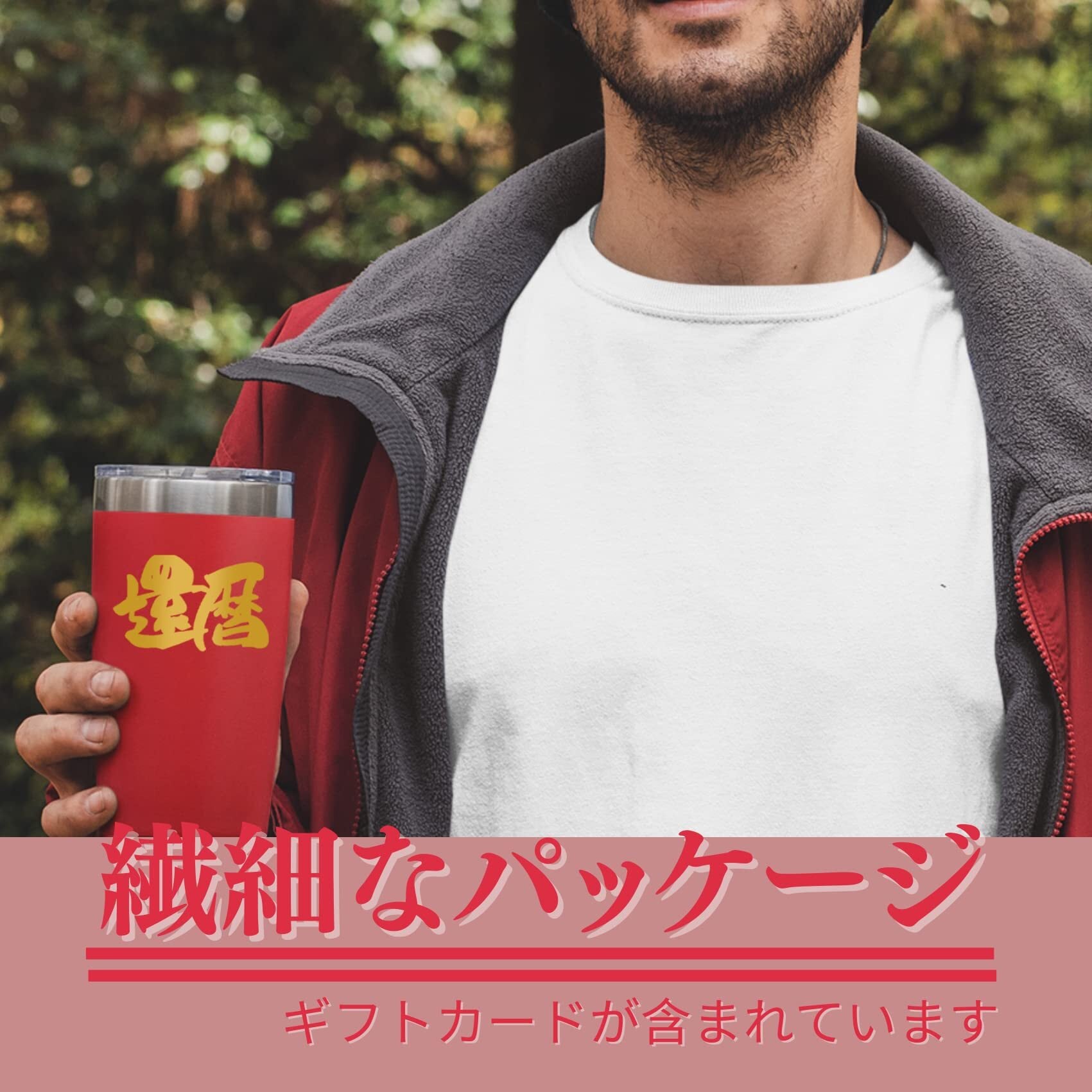 還暦祝い プレゼント590ml 60歳男性女性 水筒 マグカップ ステンレスタンブラー ふた付き 保温保冷 真空断熱 父・母・上司・同僚・友人(赤)