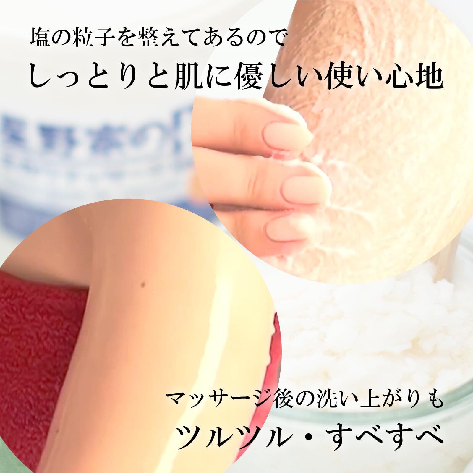 【敏感肌にも優しい天然塩のマッサージソルト】国産の良質な「鳴門塩」と天然美容成分のみで作られた手作りのソルトスクラブです。肌に優しい粒子に整えましたので、敏感肌の方でも安心してお使いいただけます。
