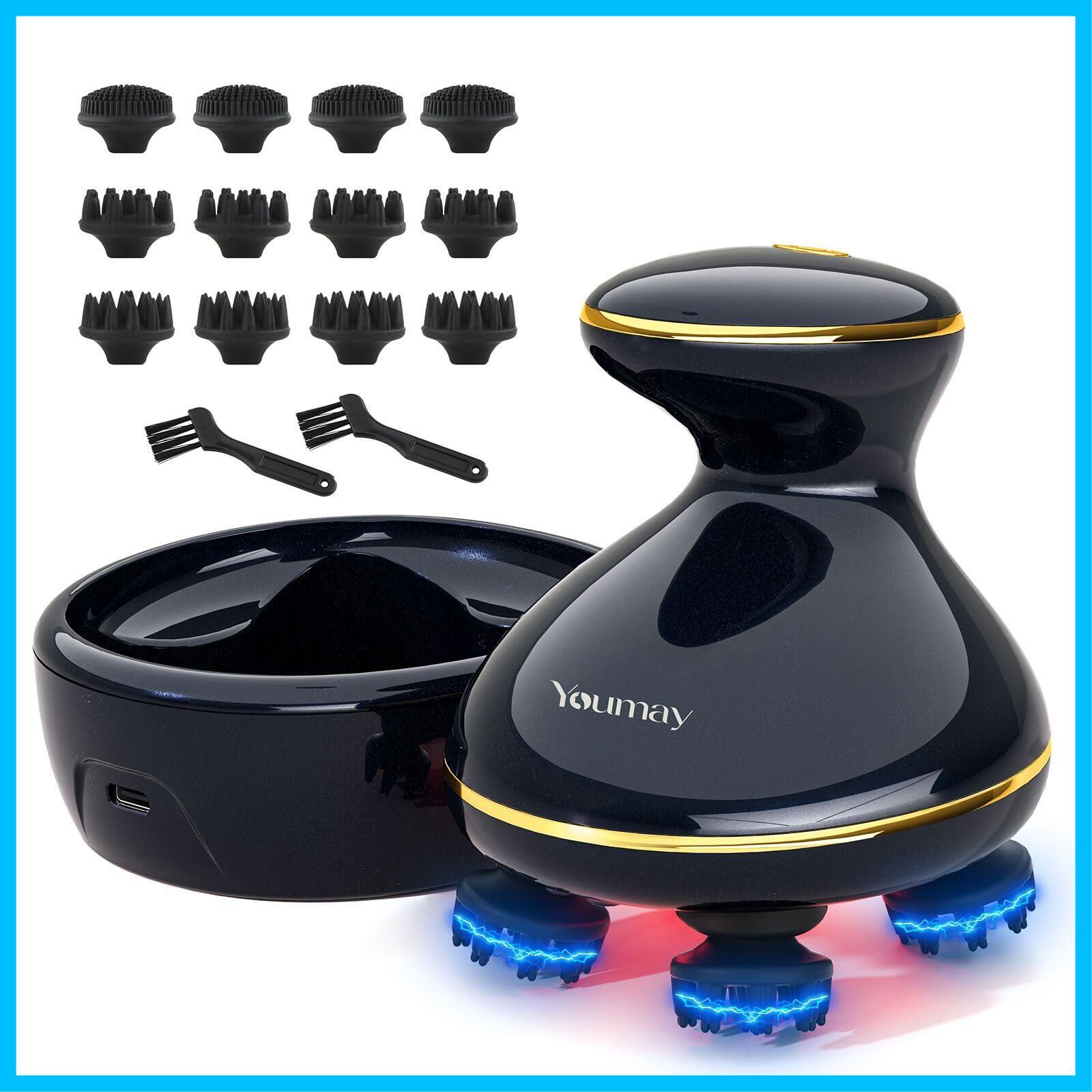 Youmay ヘッドスパ EMS 電動頭皮ブラシ 電気針 赤色LED機能付き 振動機能付き スカルプケア フェイスケア EMS HEAD SPA IPX7防水 乾湿両用 リラクゼーション器 15分タイマー シャンプーブラシ 美容家電 コードレス 充電式 イーエムエス 健康グッズ ギフト | Lulu