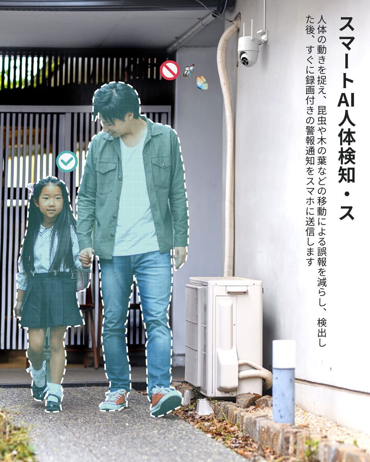 ✨【AI人体検知・動体検知・音光警報・可帰位自動追跡 】この監視カメラには最先端の人体検出(人体検出機能)と運動検出機能も搭載されており、人物や動物を検知する時だけ録画、携帯アプリで警報通知を受信します。光変化、枝やカーテンの揺れなどに対してほとんど反応しないので、 Micro SDカード容量を節約し、不要な誤警報を避けます。また、他の防犯カメラでは、固定式だと限られた範囲しか録画できません。 範囲に検知エリアを自由で特定の箇所のみを検知したい位置を指定して検知することができ、99%迷惑な誤警報を削減できます。また、自動追尾機能が付き、人を検知するとすぐに自動的に追跡します。