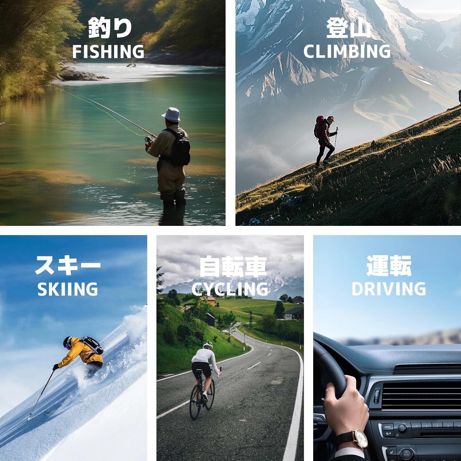 【偏光機能搭載】偏光機能搭載レンズは川などの水面のギラつきや道路での照り返しなどの乱反射をカットしてくれるレンズです。釣り、ドライブ、サイクリング、ランニング、トレッキングをされる方にオススメです。