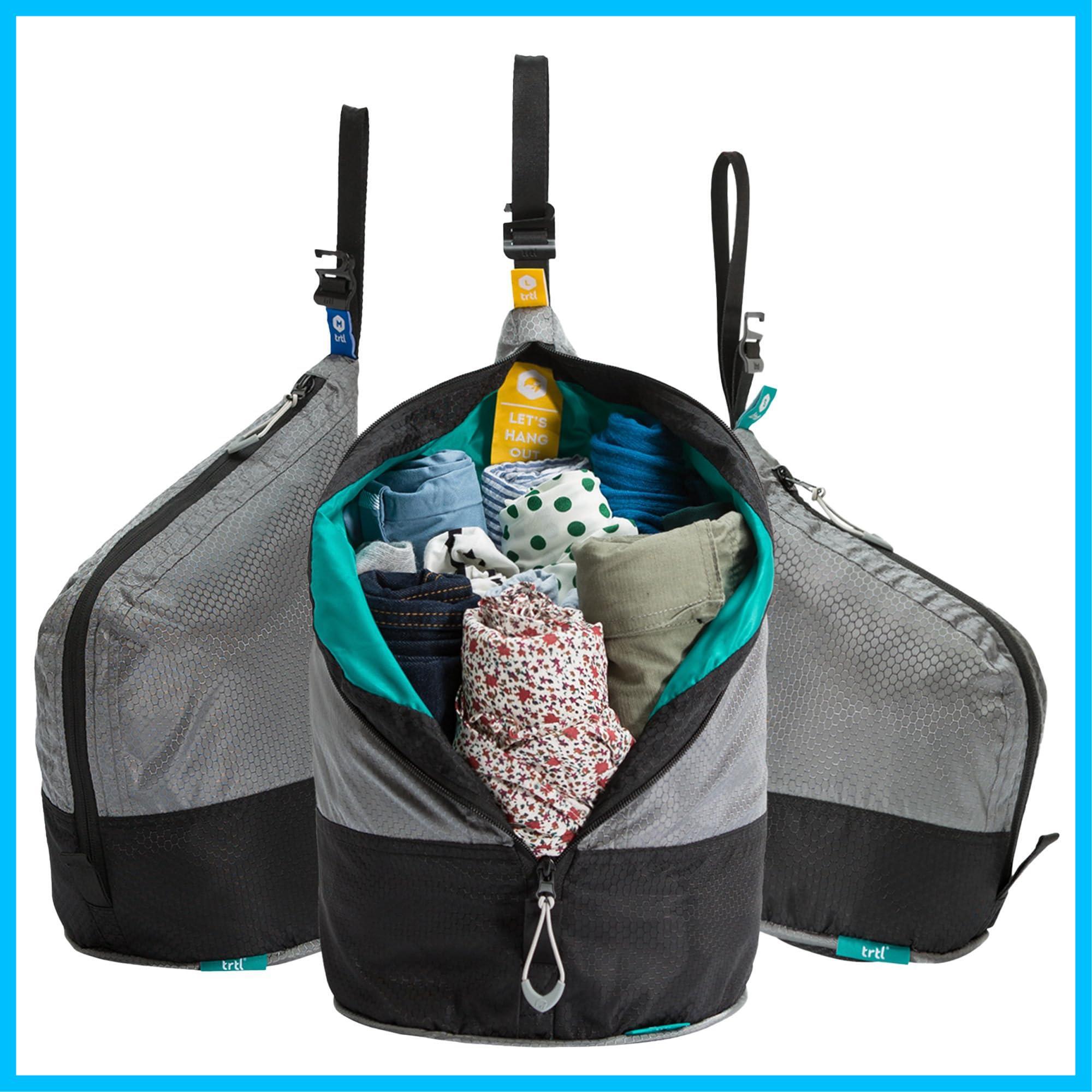 trtl パッキングポッド 吊り下げて持ち運びできるパッキングキューブ リサイクルプラスチックボトル製 (3点セット:スモール、ミディアム、ラージ、ストラップ付き)