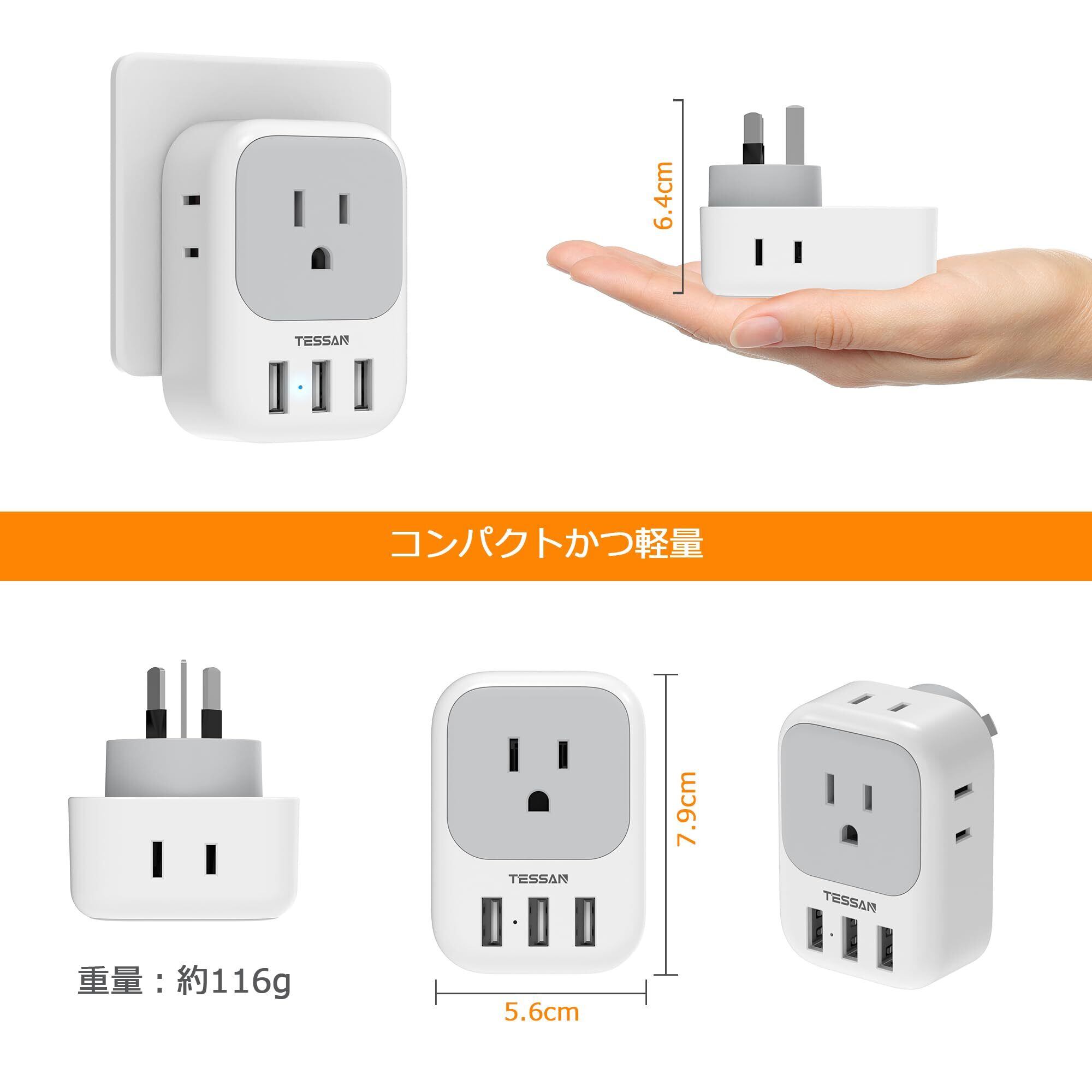 変換プラグ o型 海外旅行用変換プラグ Oタイプ 4個AC口 3USBポート TESSAN 変換アダプター 海外コンセント対応 充電器 オーストラリア/ニュージーランド/中国/アルゼンチンなどの国に対応 変換器 | Lulu