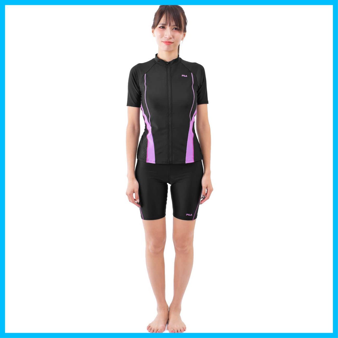 FILA フィットネス水着 レディース 上下セット めくれ防止 半袖 前ジップ 310203 (17LL, LAV)
