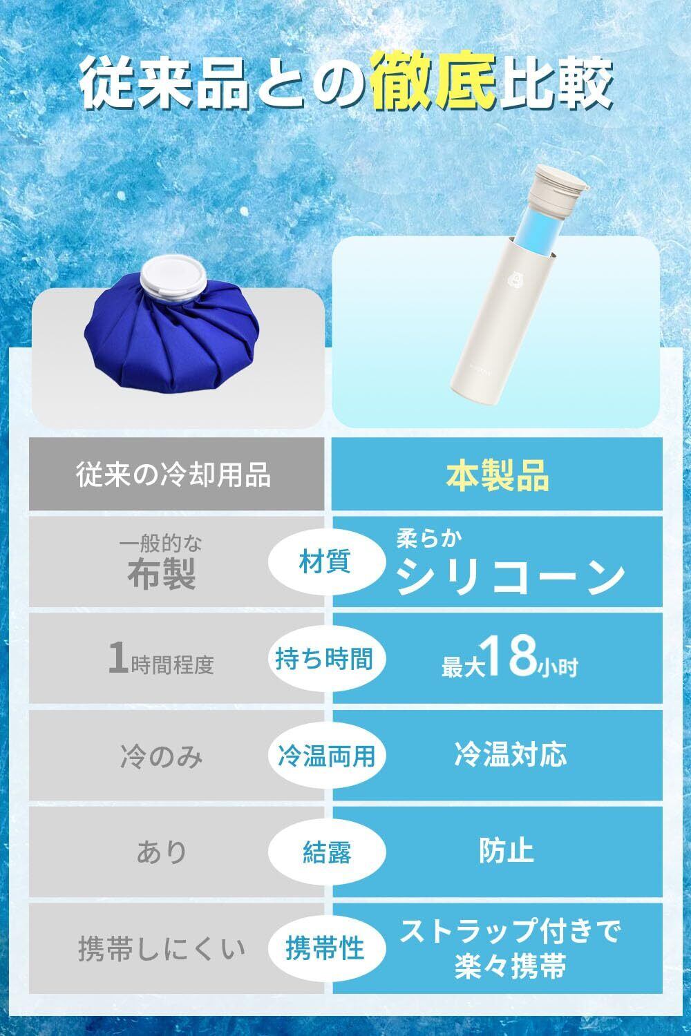 氷嚢 【2025新設計 & 18時間保冷】 熱中症対策 グッズ ミニアイスパック アイシング 氷のう 魔法瓶構造 水筒型 真空断熱 冷たさキープホルダー付き 氷嚢 持ち運び 結露なし 水漏れ防止 繰り返し利用 スティック型 スポーツ 通学 通勤 アウトドア (アイボリー)