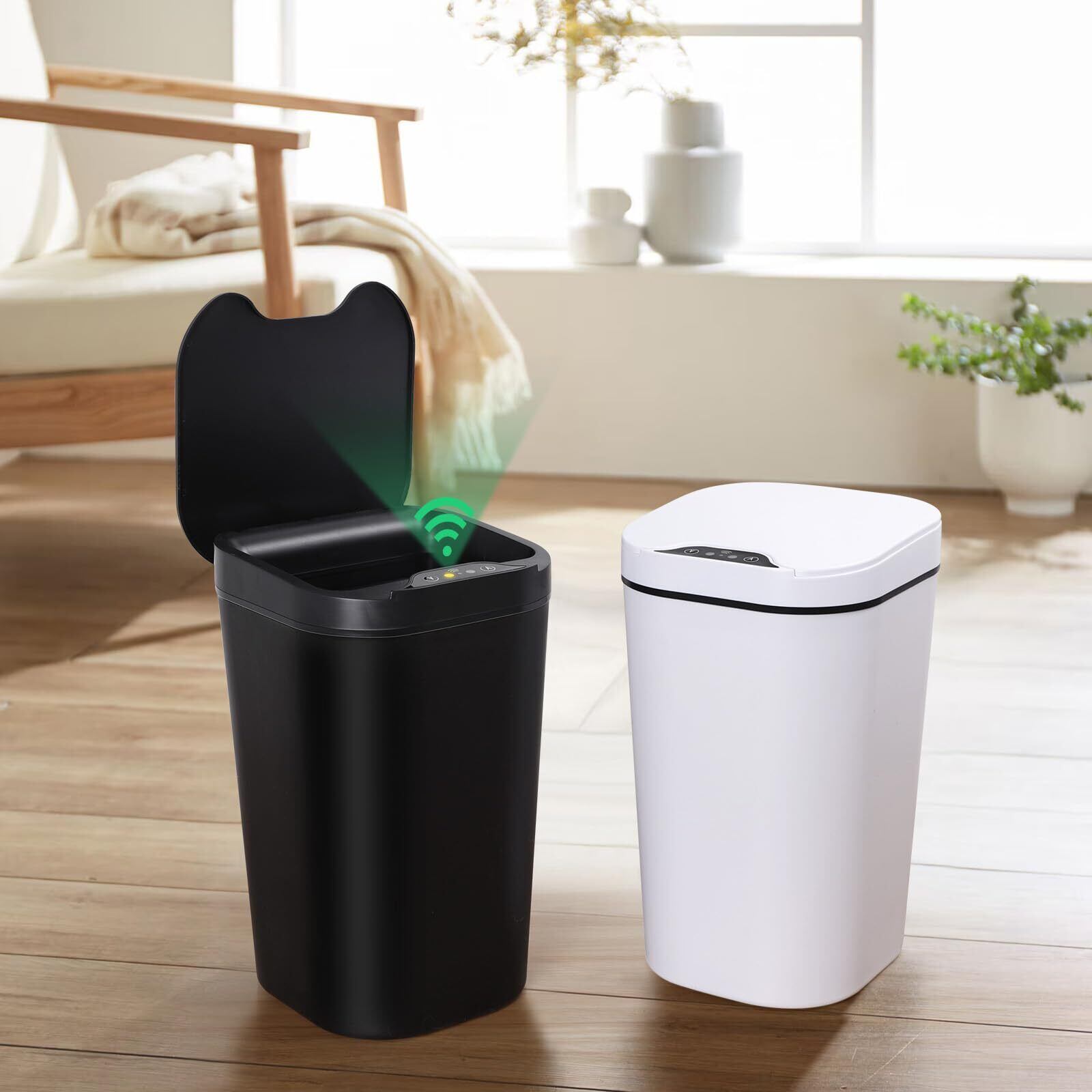 自動開閉 センサー式 ゴミ箱 ダストボックス 9L 幅18.3×奥行20×高さ32cm 単3電池2枚使用 袋が見えない TIXPOL 蓋付き タッチレス センサー式 シンプル 馴染みやすい おしゃれ 防臭 静音 室内 キッチン リビング オフィス用 (ホワイト+ブラック(9L))