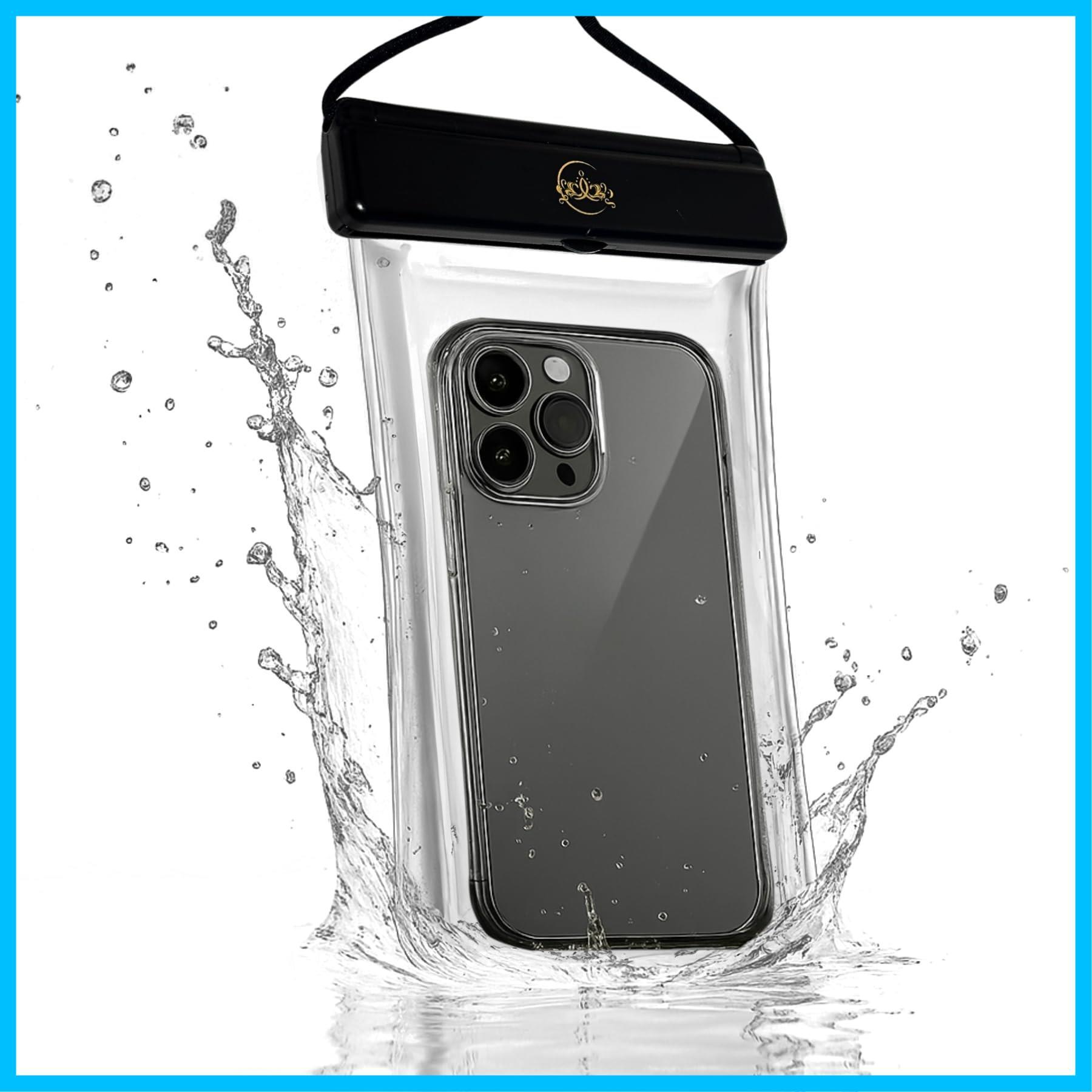 【3重ガード構造】 UMIHIME スマホ防水ケース お風呂 海 プール 海水浴 スマホ ブラック iPhone 携帯防水ケース 黒 海姫 アクアグリンテ (ゴールドロゴ)