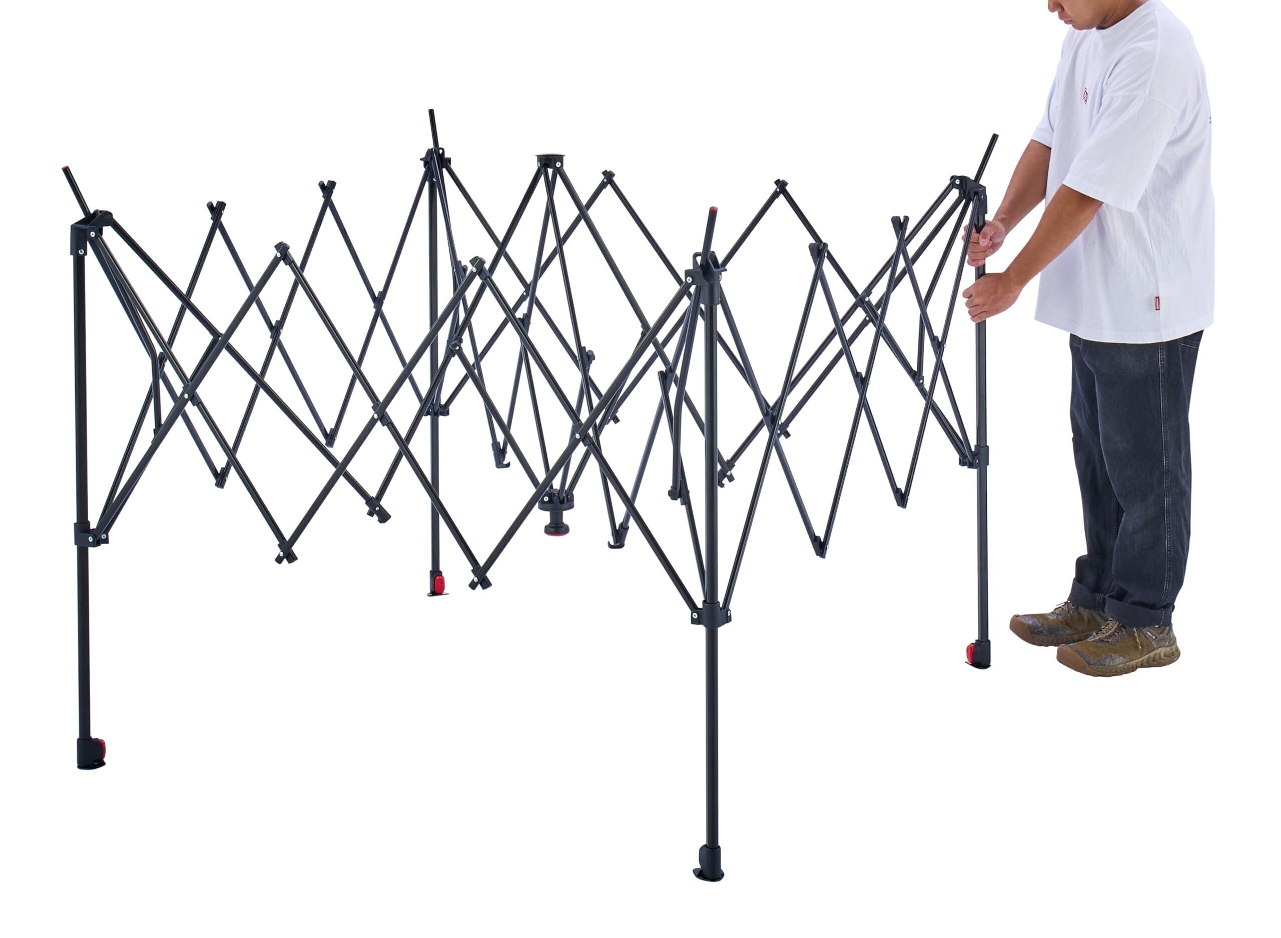 【簡単設営】フレームの天井部分にワンタッチシステムを採用。誰でも簡単に設営・撤収が可能です。