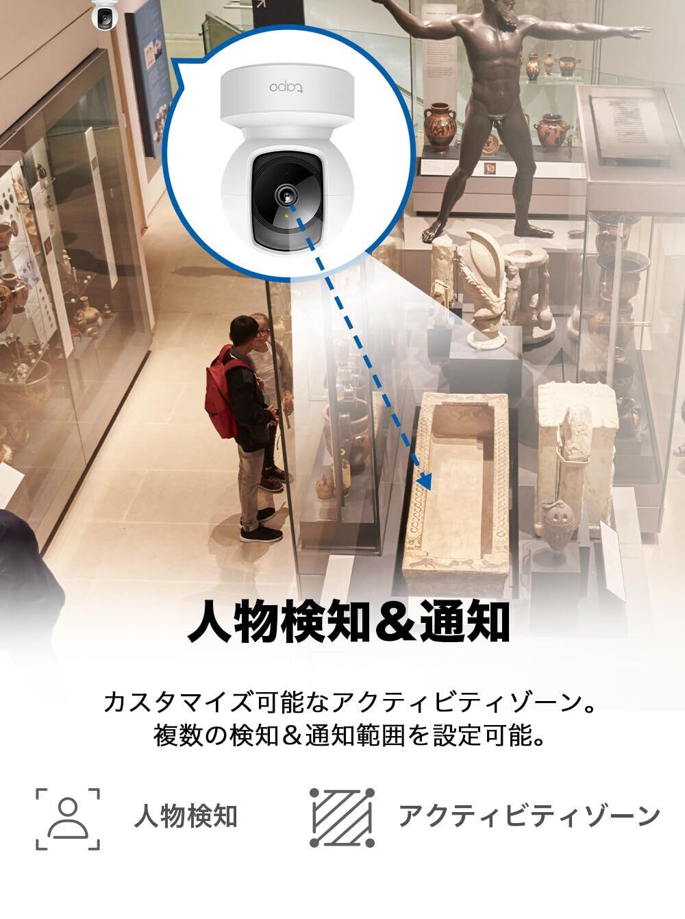 [モーション検知&アプリ通知] : 動作検知機能とスマホアプリTapoへのアプリ通知機能の両方をご利用いただけます。