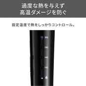 髪質に合わせて4段階(140/160/180/200)の温度が選べます。設定温度で熱をしっかりコントロールしながら、過度な熱を与えず高温ダメージを防ぎます。選択中の設定温度がランプで確認できます。