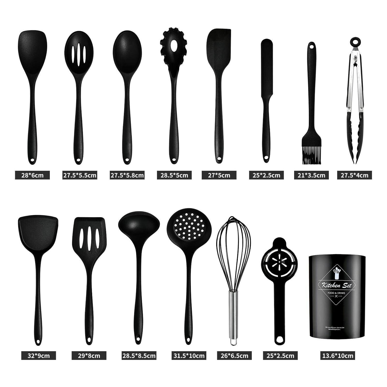 キッチンツール セット シリコン 調理器具セット 製菓器具 ツール15点セット ツールスタンド付き シリコンキッチンツール セット 高耐熱性 一人暮らし フライ返し ブラシ 泡立て器 スプーン スパチュラ トング 抗菌 傷つかない おしゃれ お祝いギフト 母へのプレゼント 新居祝い ブラック(15点セット) | Lulu