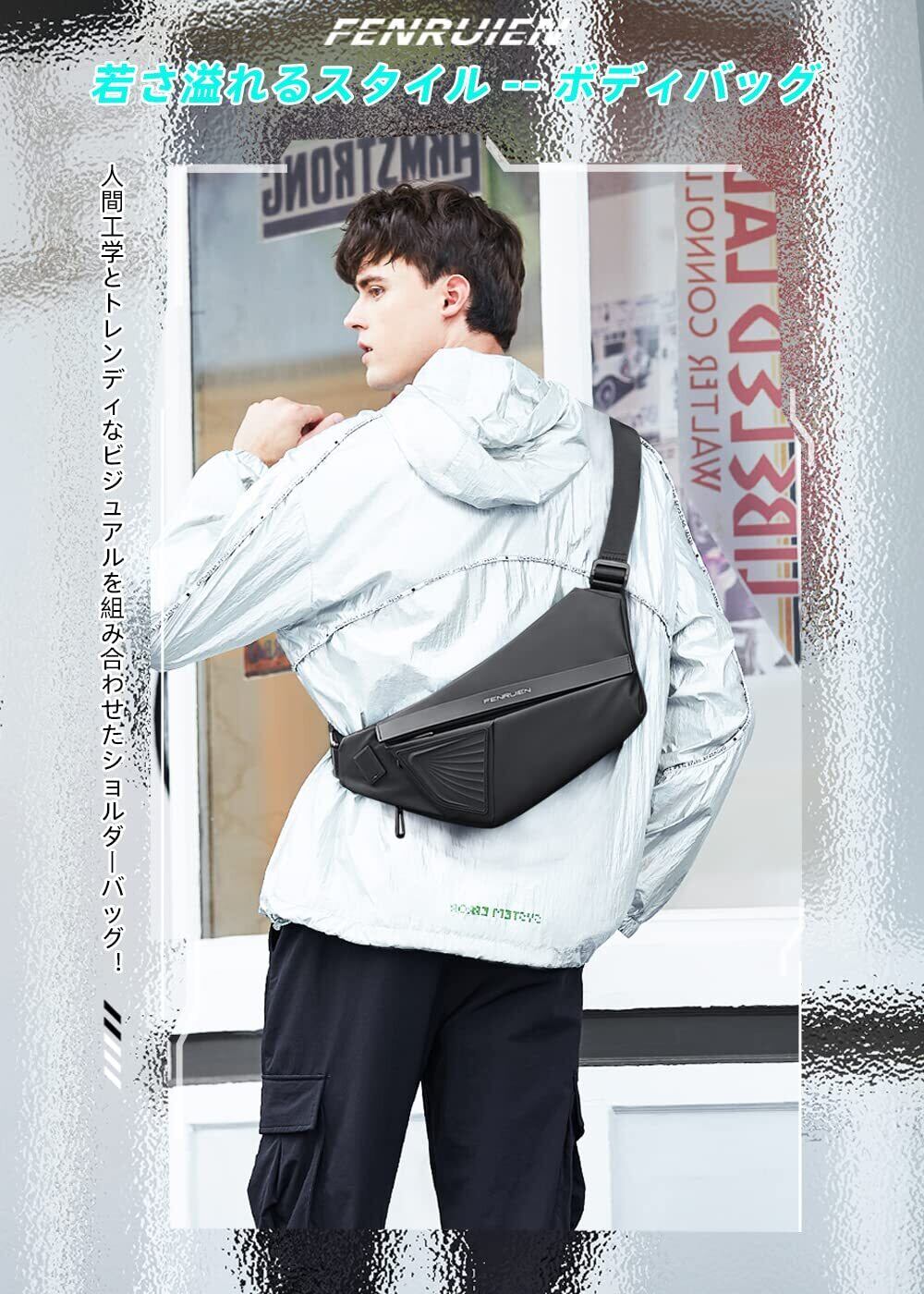 [FENRUIEN] ボディバッグ メンズ 大容量 ショルダーバッグ 防水 拡張可能 USBポート付き 肩掛けバッグ 通学 レジャー スポーツ 自転車 斜めがけバッグ 2025