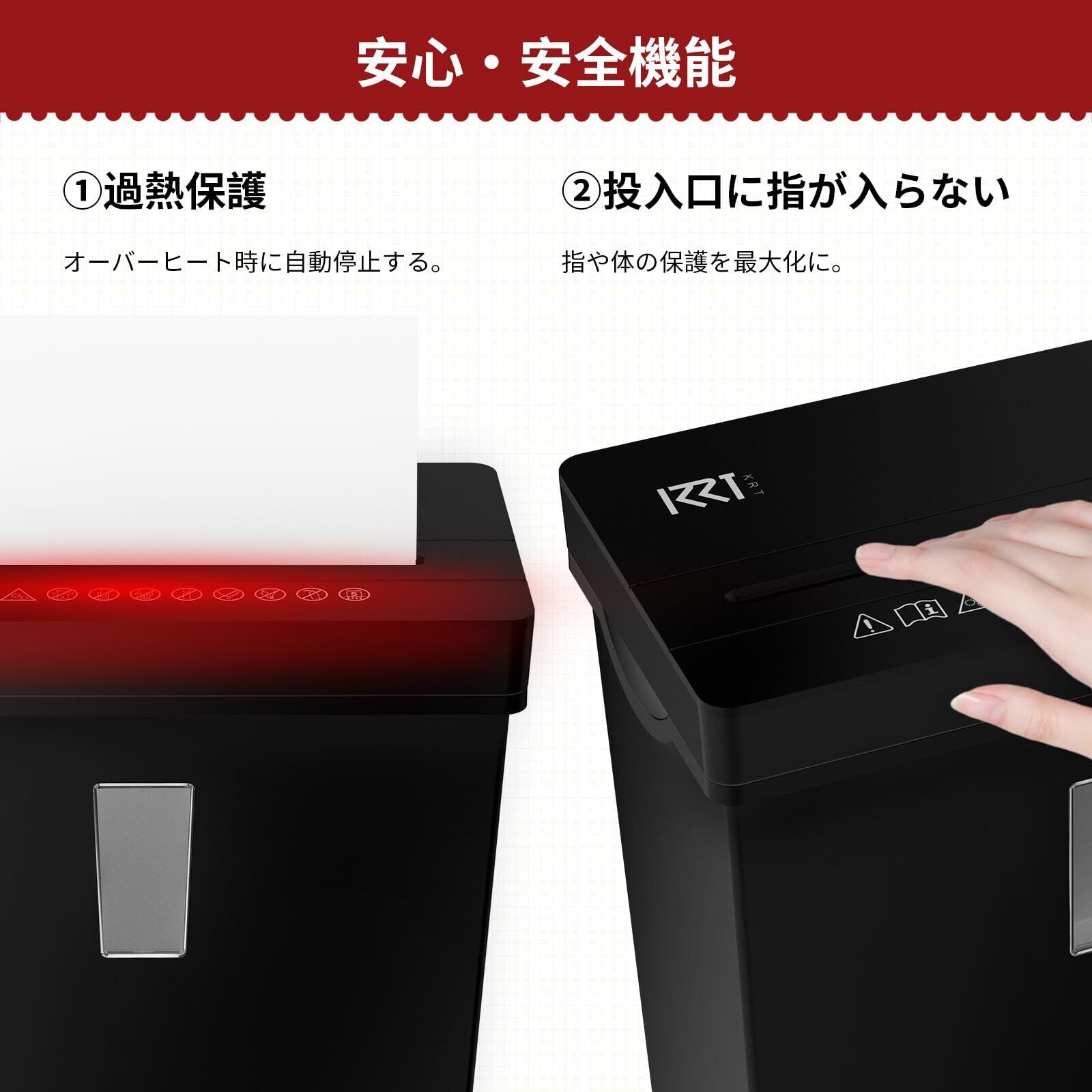 【安心安全設計】モーター保護あり、シュレッダーがオーバーヒートすると、自動的に細断を停止します。本体(ふた)を開けると細断を自動で停止、子供連れの家族に非常に優しいです。