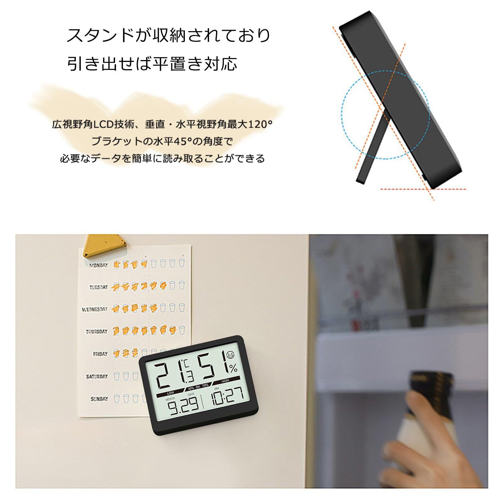 DFBL デジタル温湿度計 大画面LED 熱中症対策 マグネット/スタンド/掛け置き3way 日付表示 高精度 日本語説明書付き 寝室/オフィス/梅雨時期に 北欧風 ブラック