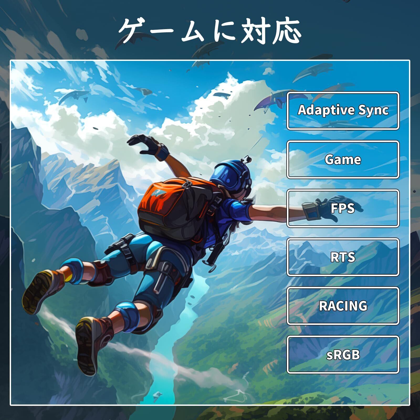[リフレッシュレート]100Hz、[応答速度]OD 5ms、[傾斜角度調整]前後-5°~15°(+/-2°) 、アイケア、ブルーライト軽減、フリッカーフリー、Adaptive Sync、[ゲームモード] RTS/FPS/RACING/スクリーン アシスタント。HDCP対応しない。