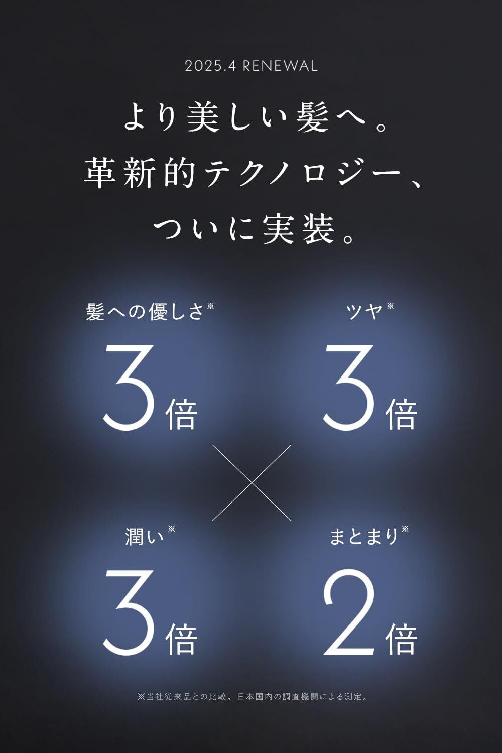 水分を含んだイオンが髪にうるおいを届け、とかすほどに艶がアップ。まるでサロン帰りのような潤いのあるまとまりへと仕上がるのが特長です。