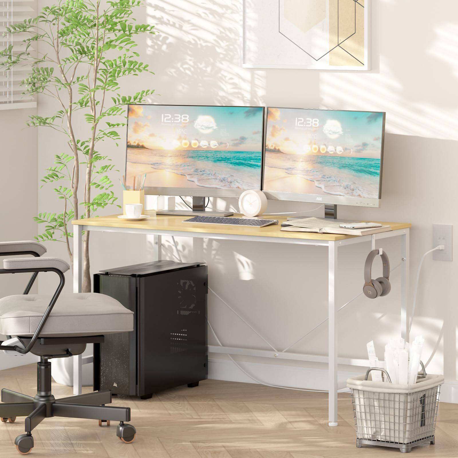 LunarLight ワークデスク 机 幅120奥行60高さ70cm テレワーク PCパソコンデスク シングルデスク 勉強机 コンセント付き オフィス 在宅ワーク ゲーミングデスク フック付き ノートパソコン用 在宅勤務 おしゃれ 組立簡単 工具不要 耐震転倒防止(ナチュラル, 幅120) | Lulu