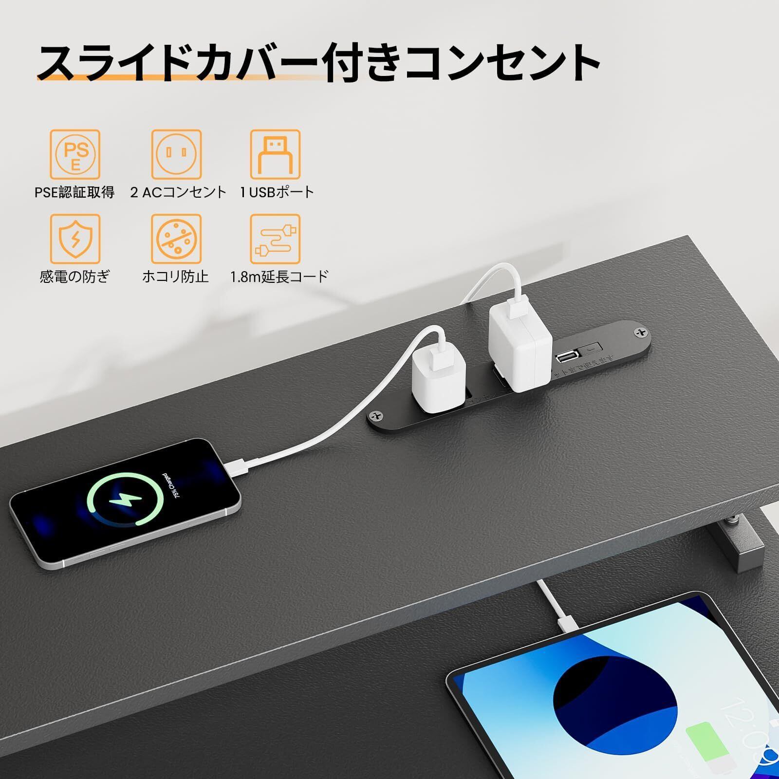 便利なコンセント付きACコンセントが2つ、USBポートが1つ搭載されており、スマホやタブレット、イヤホンなどをこの一台のPCデスクで充電可能!さらに、埃を防ぐ蓋付きなので使わない時も安心。充電器や配線もスッキリ整理できるので、デスク周りがぐちゃぐちゃになりません!