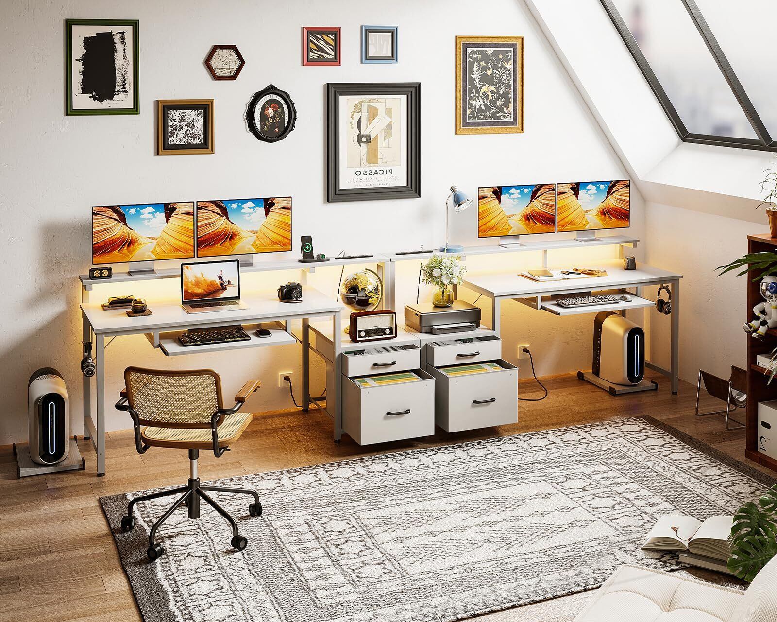 AODK パソコンデスク ゲーミングデスク 引き出し&キーボードスライダー付き 幅140cm 机 pcデスク computer desk 桌子 コンセント&LED付き ゲームデスク 長机 CPUスタンド付き 在宅ワーク 左右入れ替え対応 ホワイト | Lulu