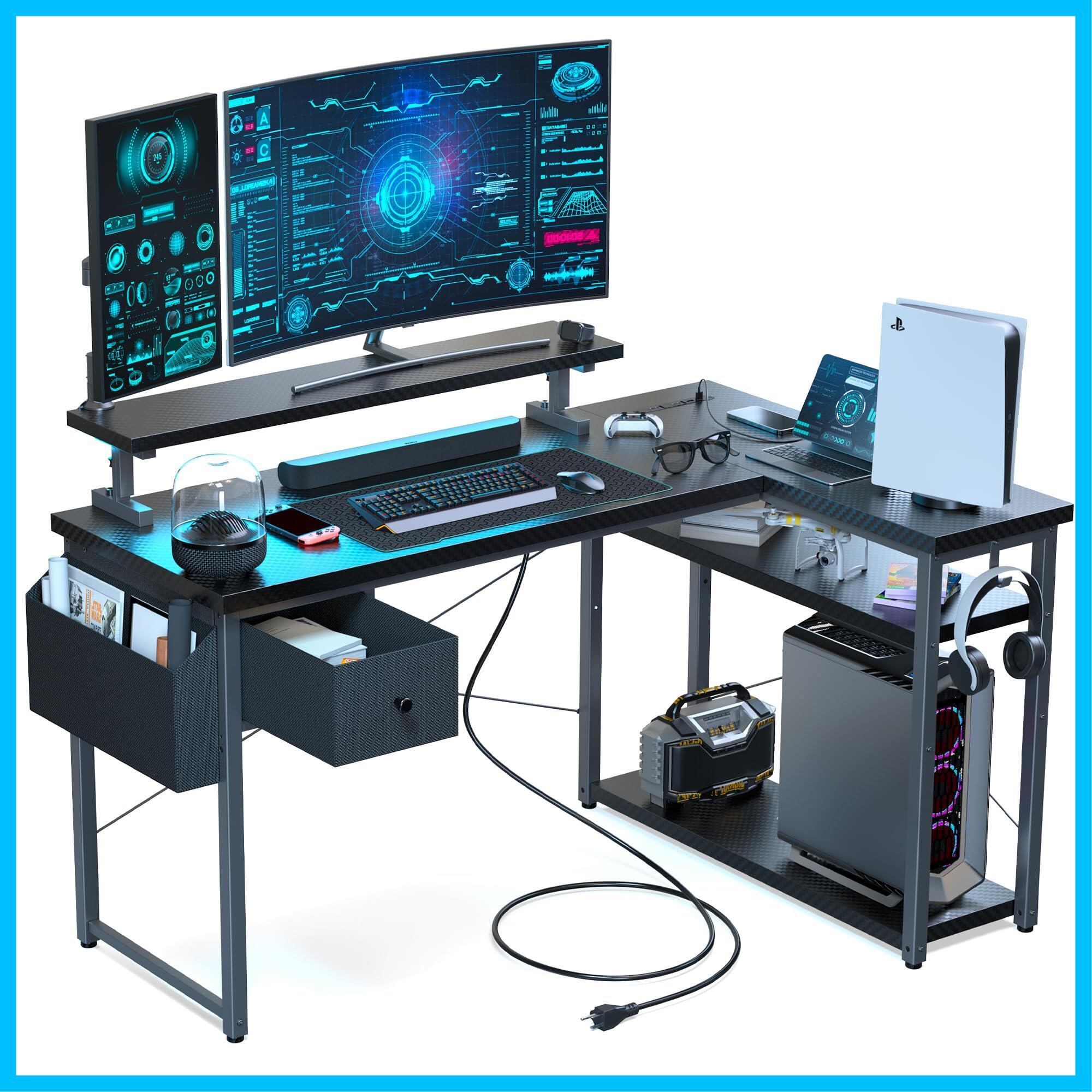 【収納力が抜群なL字デスク】l字型のデスクによる広々とした天板、かつ収納袋と引き出し付きで、収納力が満載し、オフィスでもゲーミングでも、十分なスペースを確保します。”L字”の部分は左右設置可能で、狭い空間でもコーナーを活用できます。ゲーム部屋、在宅勤務、作業机、書斎机、学習机にも色々大活躍です。
