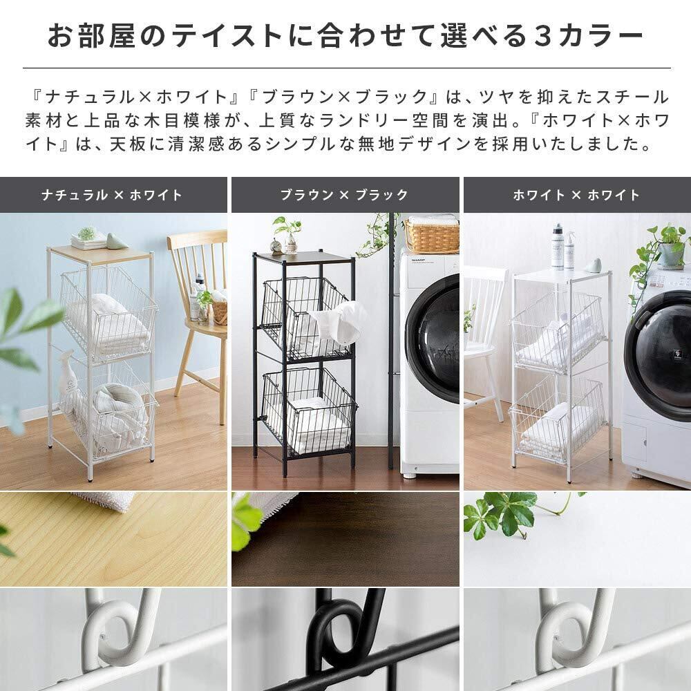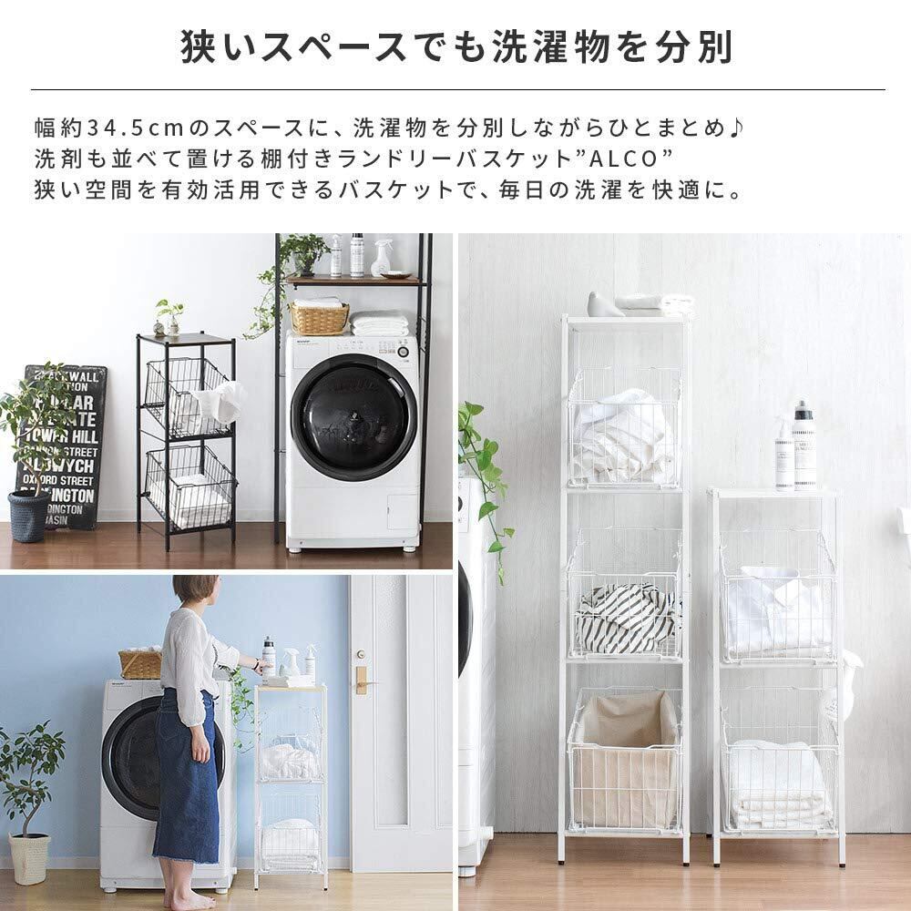 エア・リゾーム ランドリーバスケット スリム おしゃれ 棚付きランドリーバスケット ALCO(アルコ) (ナチュラル×ホワイト, 2段)