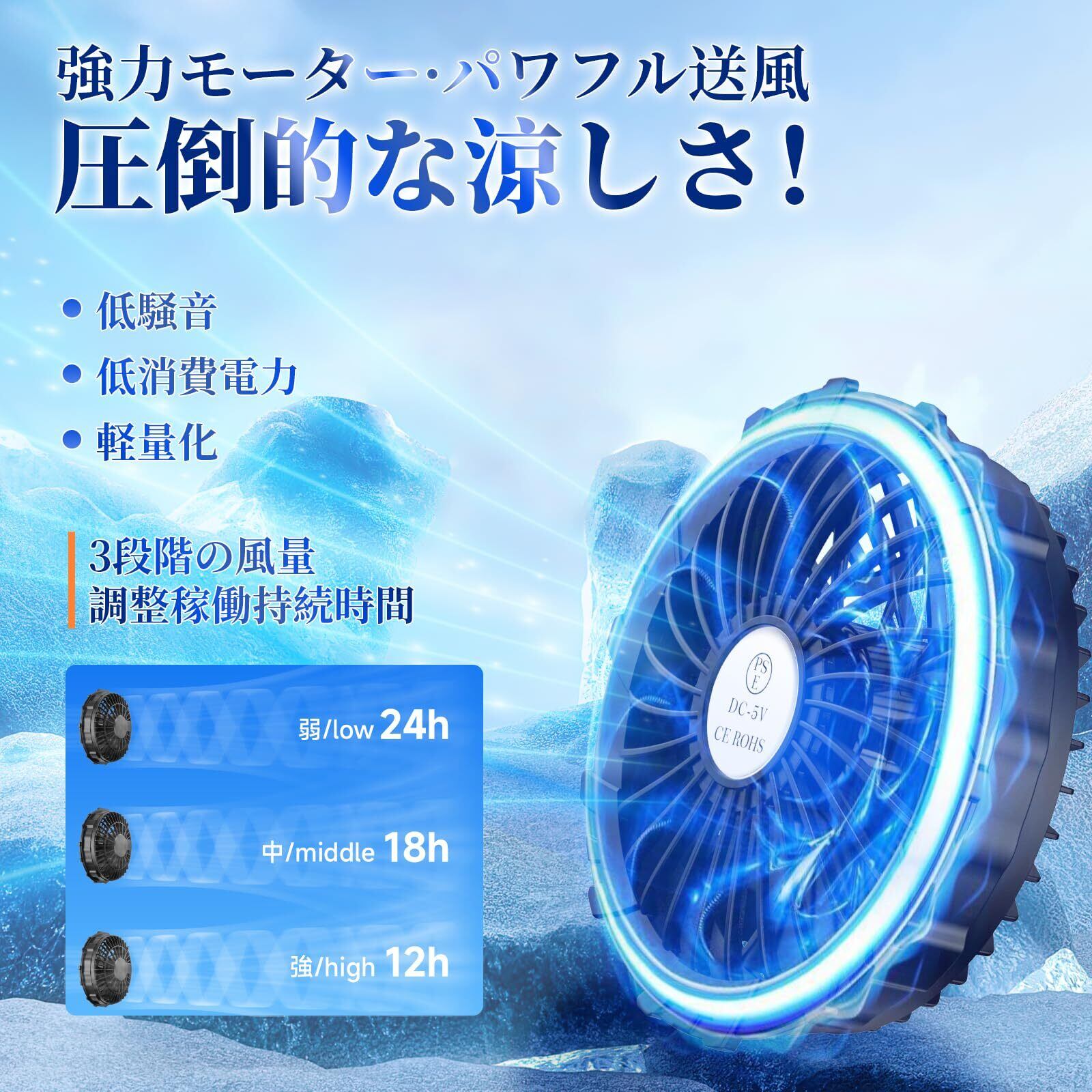 【高性能モーター搭載&強力かつ静音の送風】このエアコン服は新開発の高性能全銅芯モーターを採用しており、従来の空調ファンのモーターより、回転スピードが2倍以上向上、より大きいな風量が出るが、より静かです。わずか数分で驚異の-12℃冷却効果を発揮し、瞬時にひんやりとした快適さをお届けします!さらに、ファンの動作音は非常に静かで、作業の邪魔になることなく、集中して快適にお過ごしいただけます!風量は弱・中・強の3段階で素早く切り替えることができ、温度を快適なレベルに調節し、常に最適な気流を提供します。長時間の屋外作業や高温環境下での使用に最適で、作業中の体温上昇を抑え、快適な作業をします。