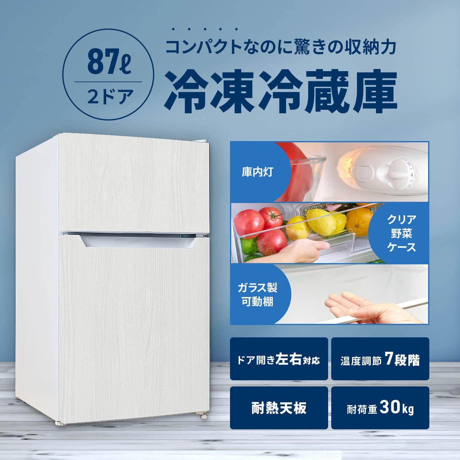 [東京Deco] 冷蔵庫 87L 2ドア 直冷式 小型 幅47cm ホワイト 左右開き可能 (冷凍室26L:冷蔵庫61L) [製氷室付き/耐熱天板/庫内灯/温度調整7段階] コンパクト 一人暮らし 新生活 ミニ冷蔵庫 省エネ 静音 おしゃれ 大容量 家庭用 オフィス w026