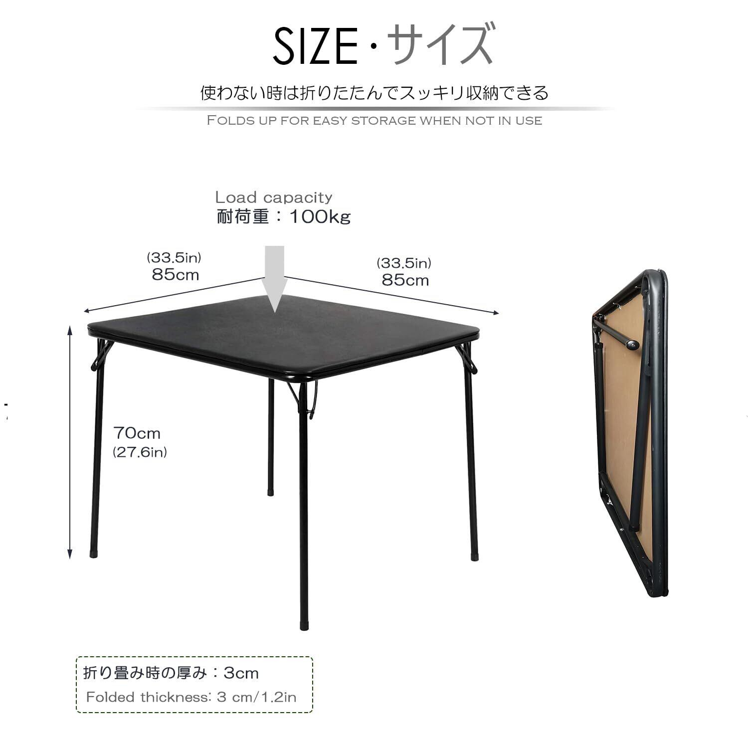 KAIHAOWIN 折りたたみテーブル ダイニングテーブル 正方形 4人用 麻雀テーブル 安定 耐久 防水 防汚 省スペース 組み立て不要 室内 キャンプ アウトドア ゲーム用 (85×85 cm,ブラック) | Lulu