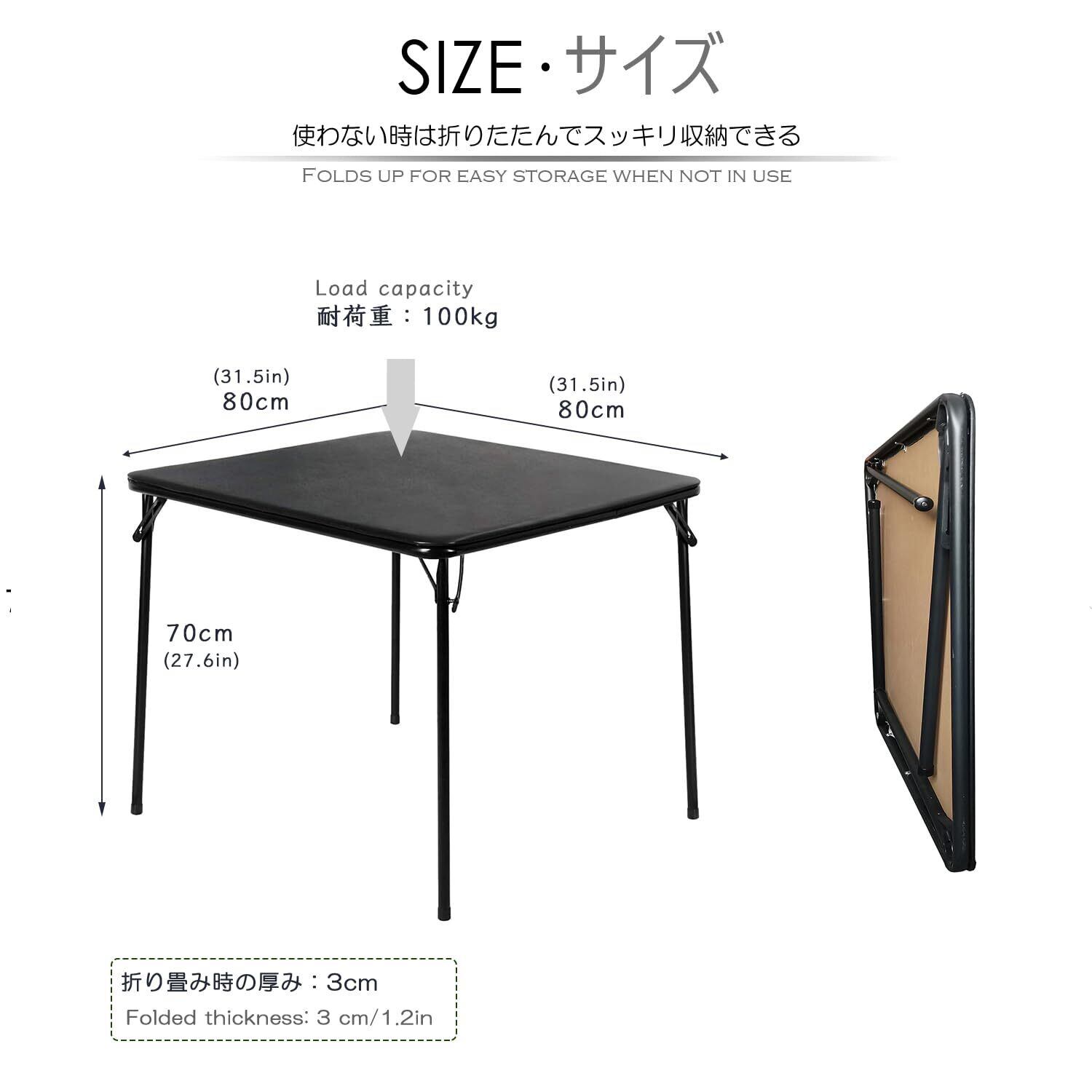 KAIHAOWIN 折りたたみテーブル ダイニングテーブル 正方形 4人用 麻雀テーブル 安定 耐久 防水 防汚 省スペース 組み立て不要 室内 キャンプ アウトドア ゲーム用 (80×80 cm,ブラック) | Lulu