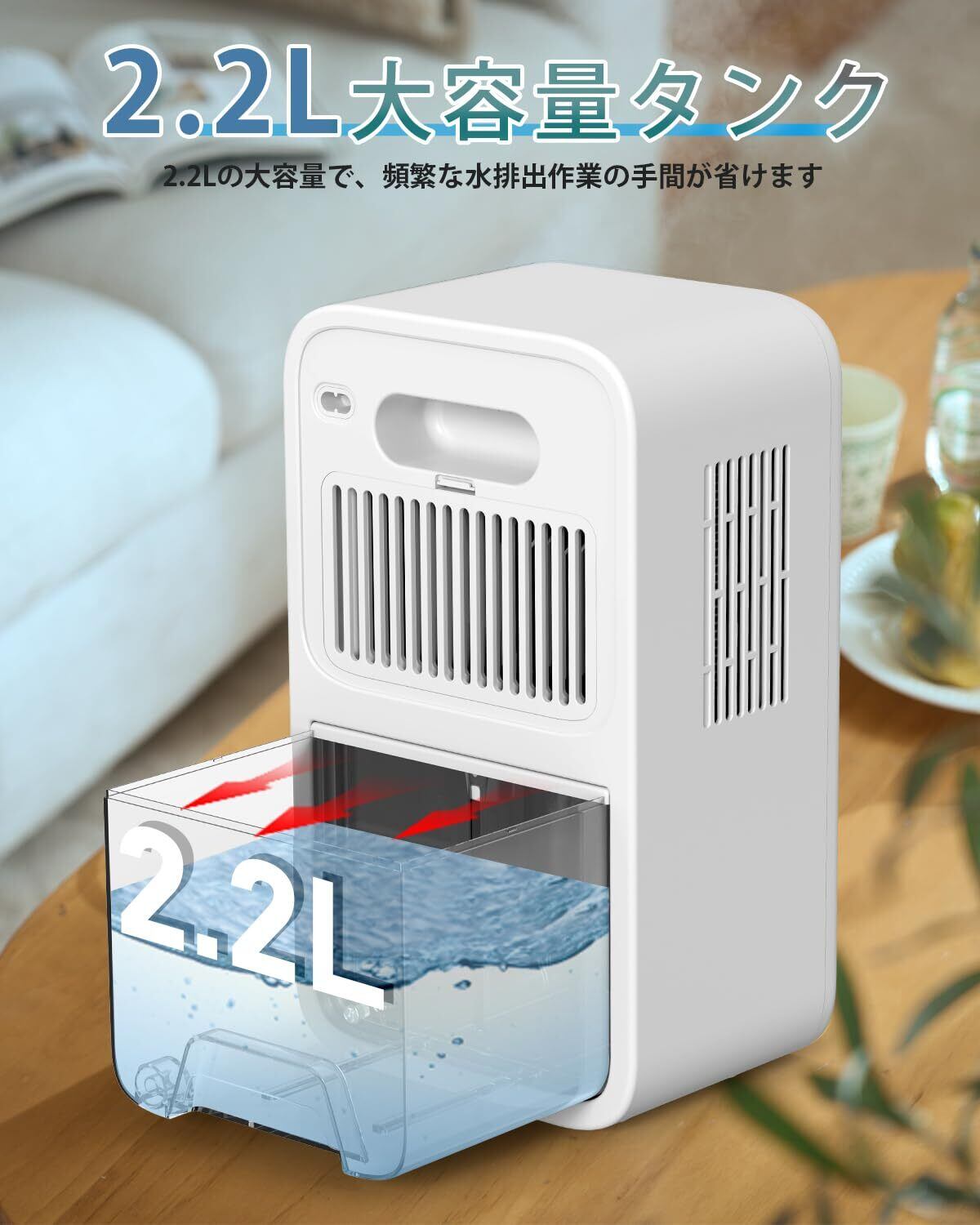【強力除湿・2200MLの大容量】2025新版除湿機、革新的な半導体技術、アップグレード吸気口、1日に800mlの除湿能力!(湿度80%、温度30℃の環境条件でテスト)強力な除湿能力で、ダ二、結露、異臭、カビなどの湿気問題を解決し、快適で清潔な空間を作り出します。本除湿機には2.2リットルの大容量透明水箱が付属しており、除湿量が一目で分かります! 2.2Lの大容量で、頻繁な水排出作業の手間が省けます。(ご注意:吸気口を清潔に保ちほこりがなく、ほこりがあると吸気口に詰まりやすく、製品の除湿力が低下する。)