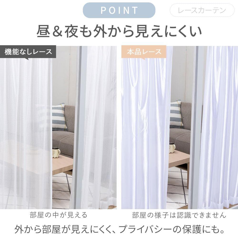 外から見えにくい、UVカットのあるレースカーテンも付いたお買得セット。