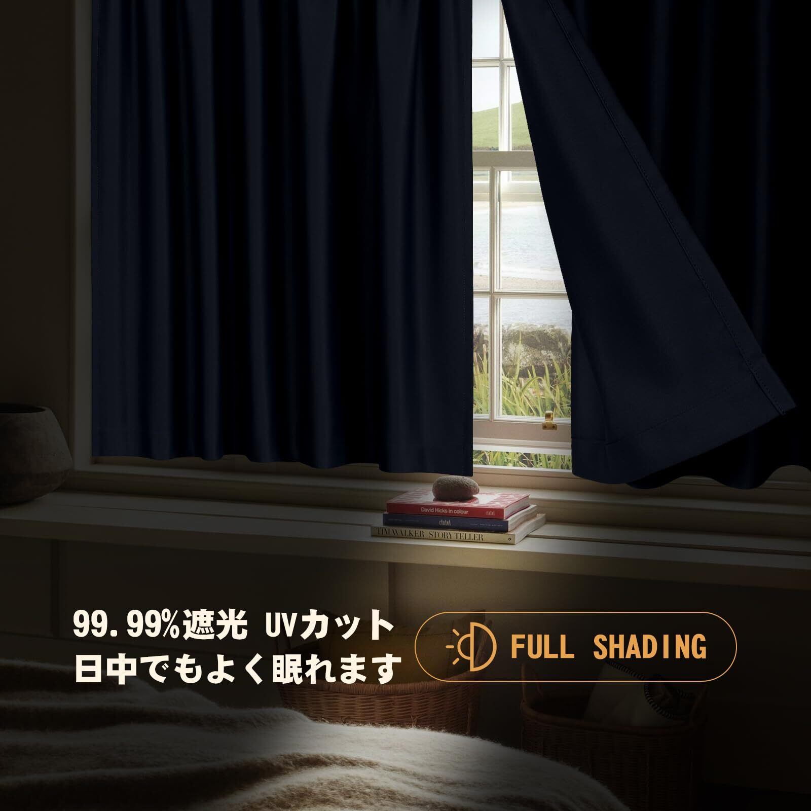 【製品・カラー・サイズ】 カフェカーテン・ネイビー[遮光1級・厚め] ・ 幅100cm x 丈80cm [1枚入] 適応窓サイズ:幅50 - 90cm