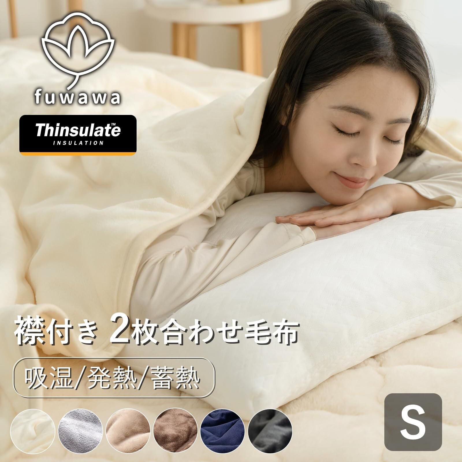 fuwawa シンサレート 毛布 シングル 冬用 2枚合わせ 襟付き ブランケット 厚手 フランネル 3Mシンサレート マイクロファイバー 中綿入り 掛け毛布 暖かい かわいい おしゃれ あったか ふわふわ 吸湿速乾 抗菌防臭 発熱 軽量 防カビ 毛抜けない 静電気対策 洗える 140×200cm アイボリー