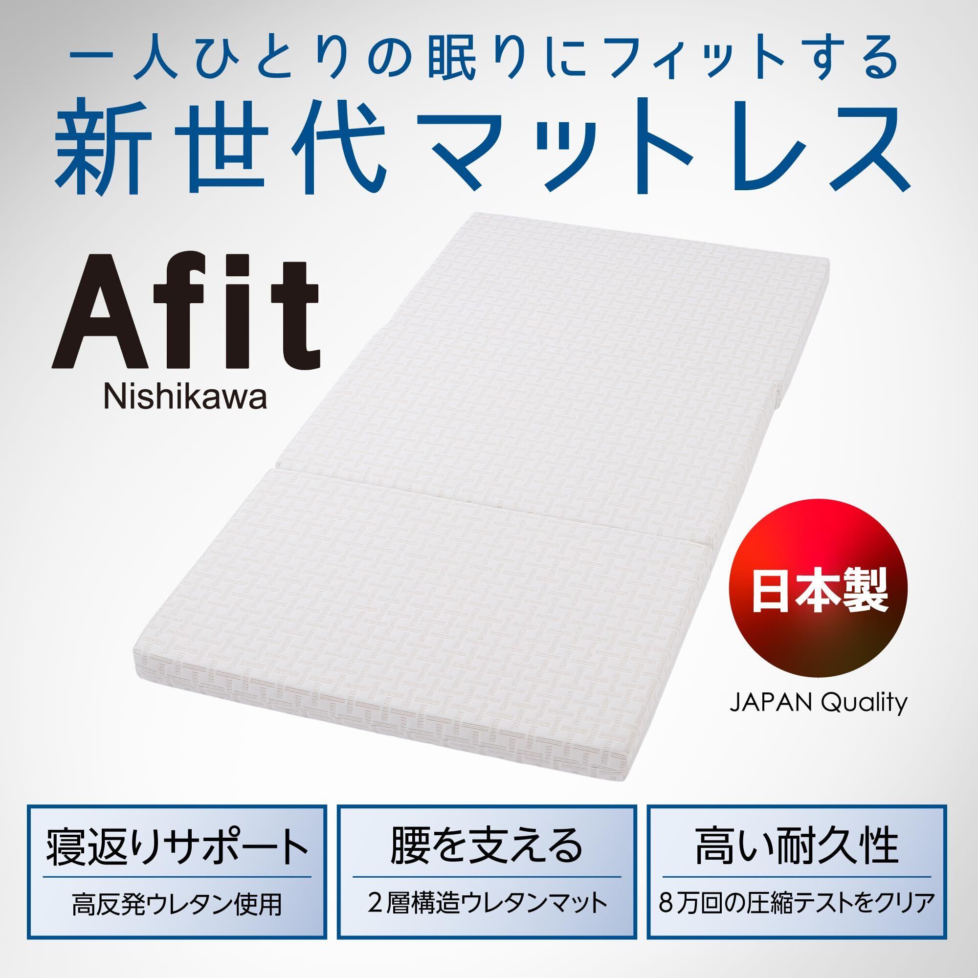 nishikawa 【 西川 】 アフィット 三つ折りマットレス シングル 日本製 腰部設計 洗濯可能な側地 折りたたみ可能 コンパクトな圧縮梱包でお届け Afit 厚さ8cm マットレストッパー 敷き布団 ベッドマットレス HC03263901300 【30日間のお試しサービス対象】 | Lulu