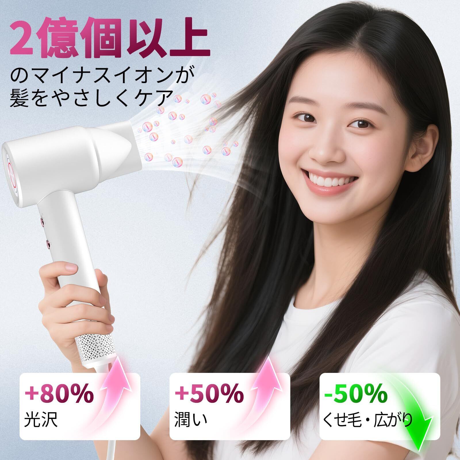 ヘアドライヤー、速乾 大風量 高速ブラシレスモーター(毎分11万回転)、2億高濃度マイナスイオン、1200W、ドラ 静音59dB、軽量、旅行/サロン/家庭用/プレゼント PSE認証済み(ホワイト)
