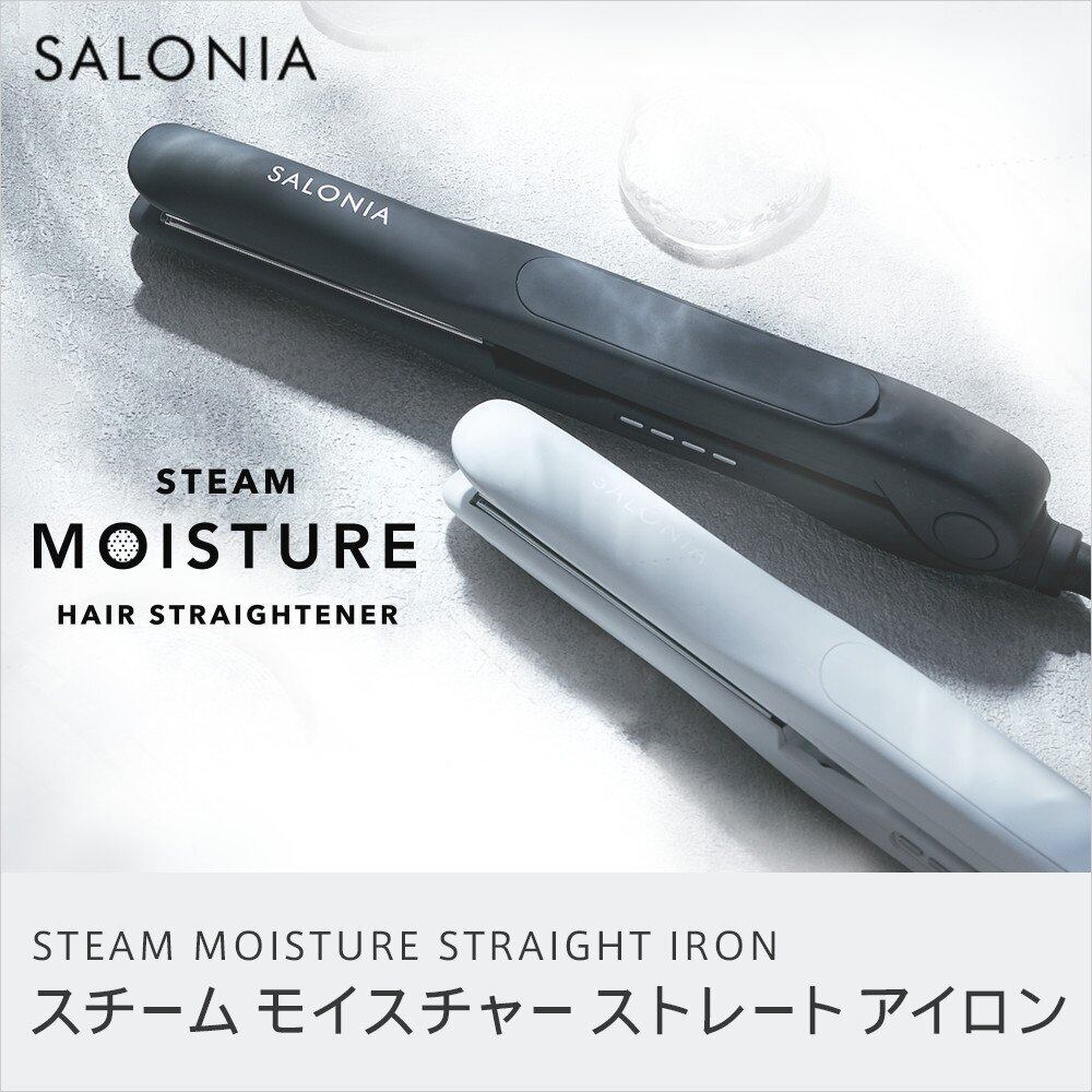 SALONIA サロニア スチームモイスチャーストレートアイロン ブラック 海外対応 専用耐熱ケース付き 高温瞬間到達