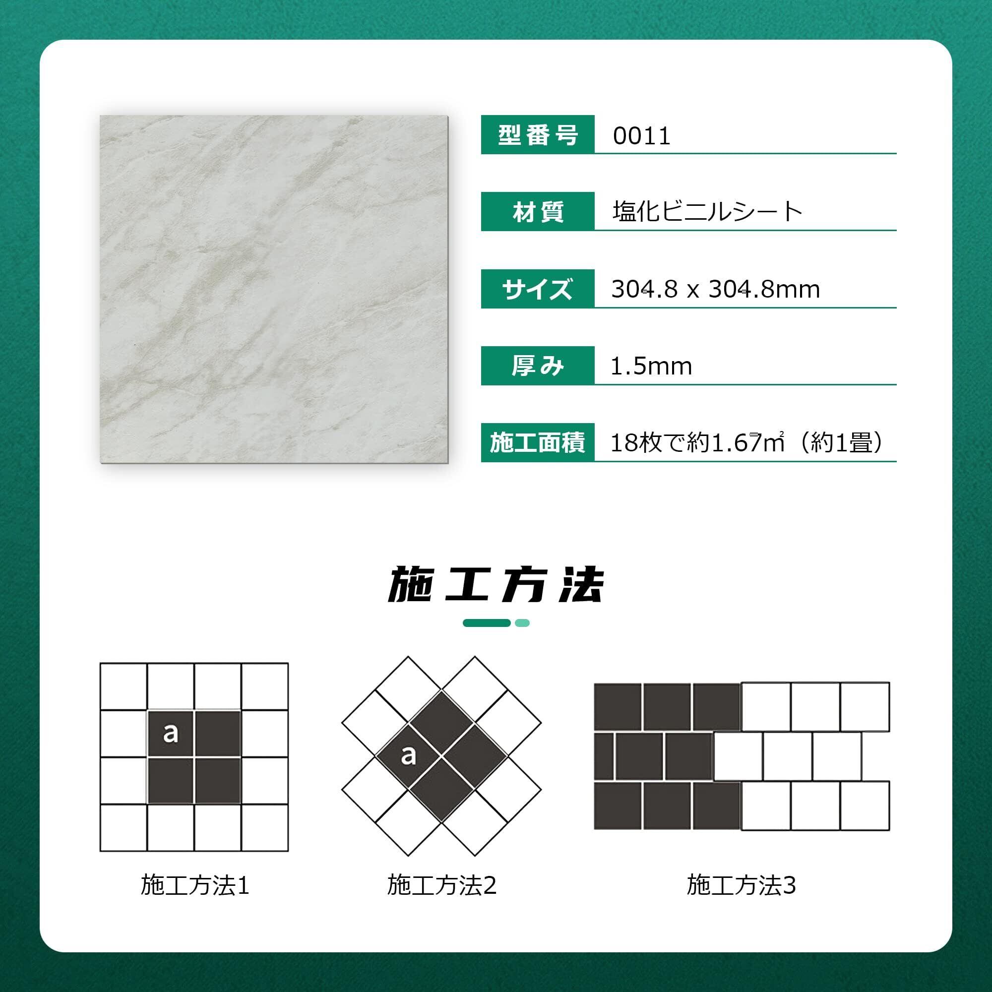 フロアタイル 置くだけ 大理石 床 シート 18枚/約1畳 クッション フロア マット トイレ 防水 フロリング マット 玄関 床 diy 張り替え リメイク シート 床材(ライトグレー 型番号011)