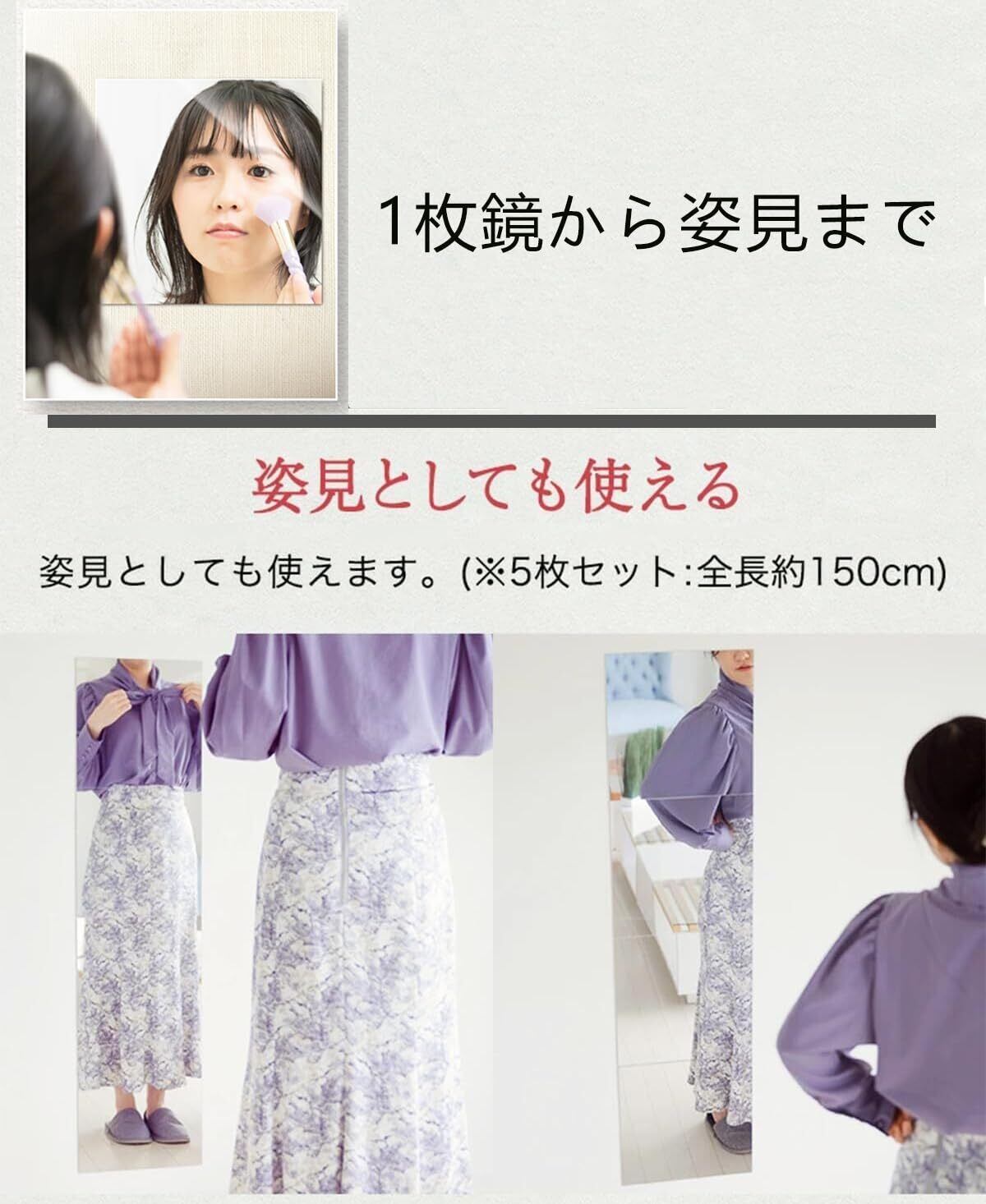 【使い方無限大】30cm×30cm5枚セット。縦に並べれば全身鏡に。ひし形でインテリアとして。一枚で髪型チェックなど配置次第で様々な使い方ができます。