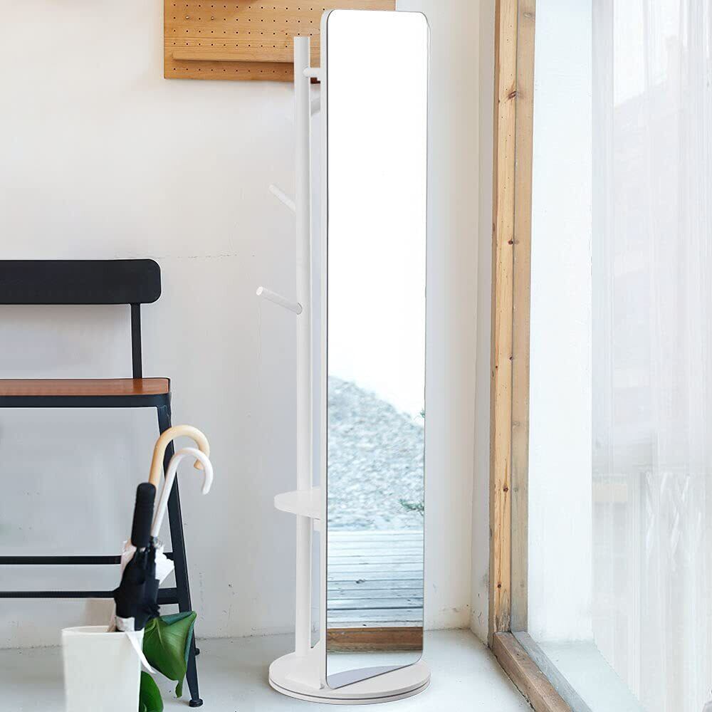MiraHope 全身鏡 全身ミラー ハンガー付ミラー 洋服収納 回転ミラー 姿見 おしゃれ ミラー付き回転ハンガー163*40CM ホワイト