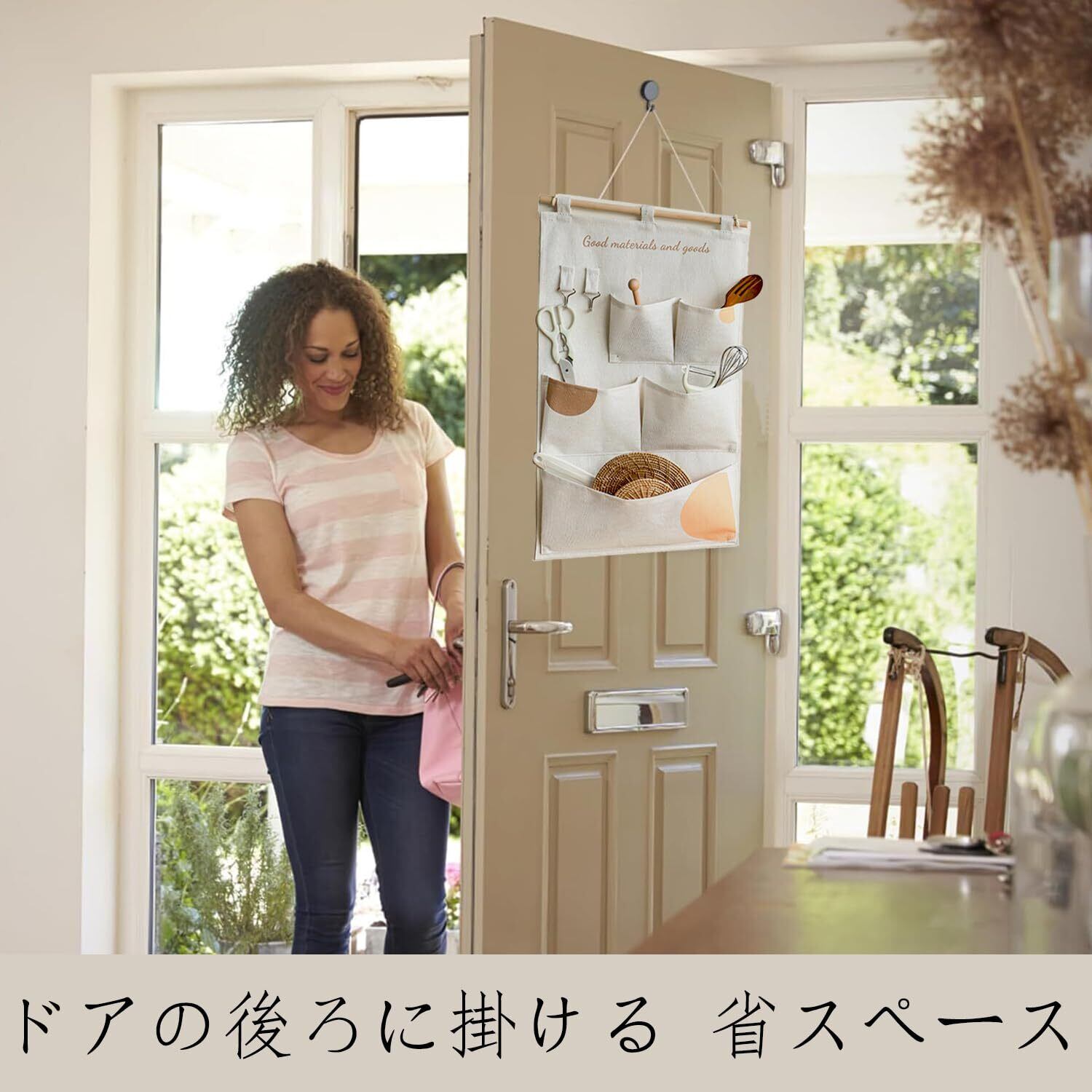 【収納アイテム】このウォールポケット小ポケット2つ、中ポケット2つ、大ポケット1つ:ウォールポケット 壁掛けカギ、メガネ、ヘアクリップ、文房具、お薬などをサッと入れておくのにちょうどいいサイズ壁掛け 収納。帽子、本、ハンガーなどのアイテムも収納できます。