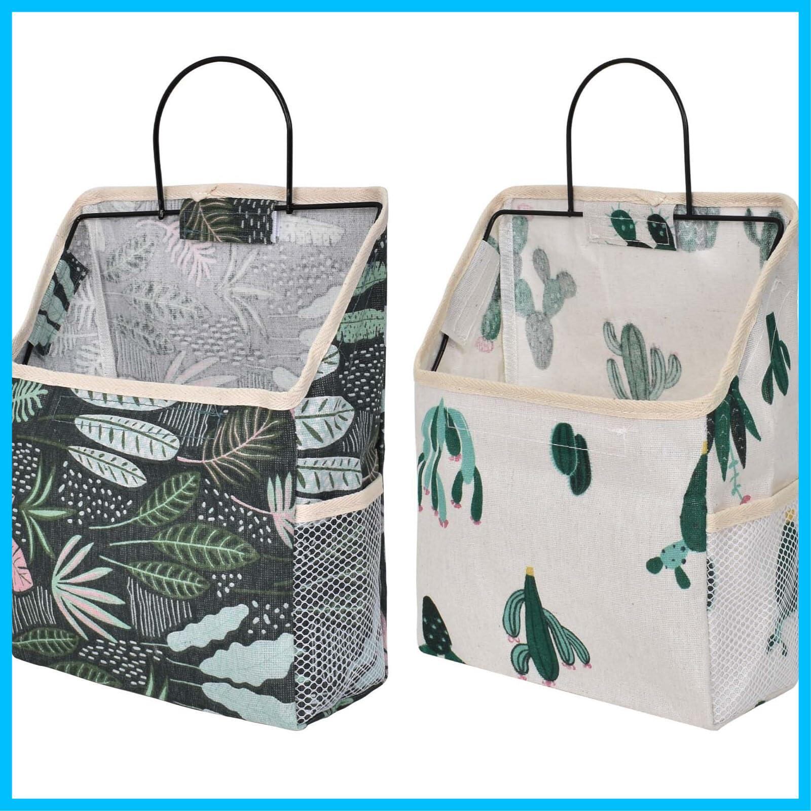 ウォールポケット 壁掛け 収納 壁掛けバッグ フック付き 収納バスケット 布製 金属フレーム付き 2個 ドア 収納 吊り下げ ポケット おもちゃ、衣類、本、雑誌、封筒、スナックの収納 (サボテン柄、植物柄) | Lulu