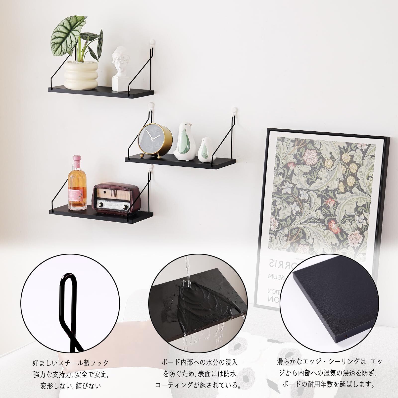 ウォールシェルフ 壁を傷つけない 30+35+40cm3点セット 壁掛け棚 賃貸 壁 棚 穴あけない ウォールラック 壁に付けられる家具 diy飾り棚木製 簡単取り付け リビング/洗面所/キッチン/トイレ/玄関 収納ラック(ブラック)