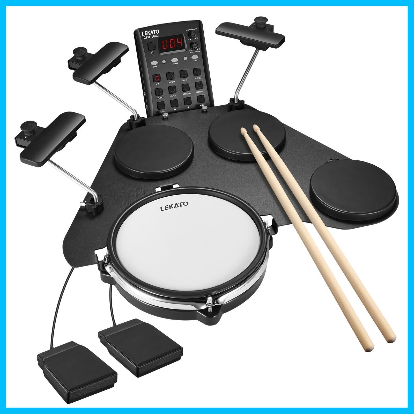 LEKATO 電子ドラムセット 静音メッシュ 折りたたみ式 付き初心者向け 電子ドラム 220種類以上のサウンド USB MIDI 2スイッチペダル スティック付き電子ドラムキット トラベルバッグ | Lulu