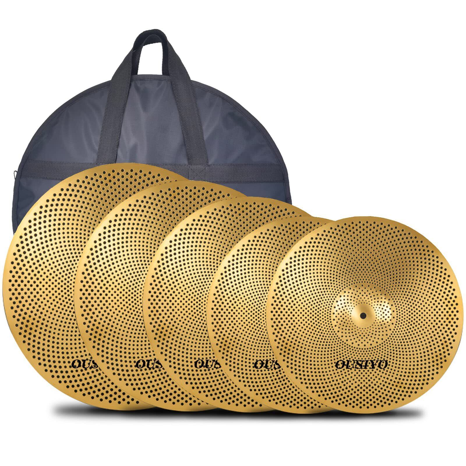 ミュート ローボリューム シンバル ハイハット クラッシュ ライド シンバル 5枚パック(14in HH*2+16in+18in+20in) 初心者 ドラム練習向け ケース付け OUSIYO (真鍮色)