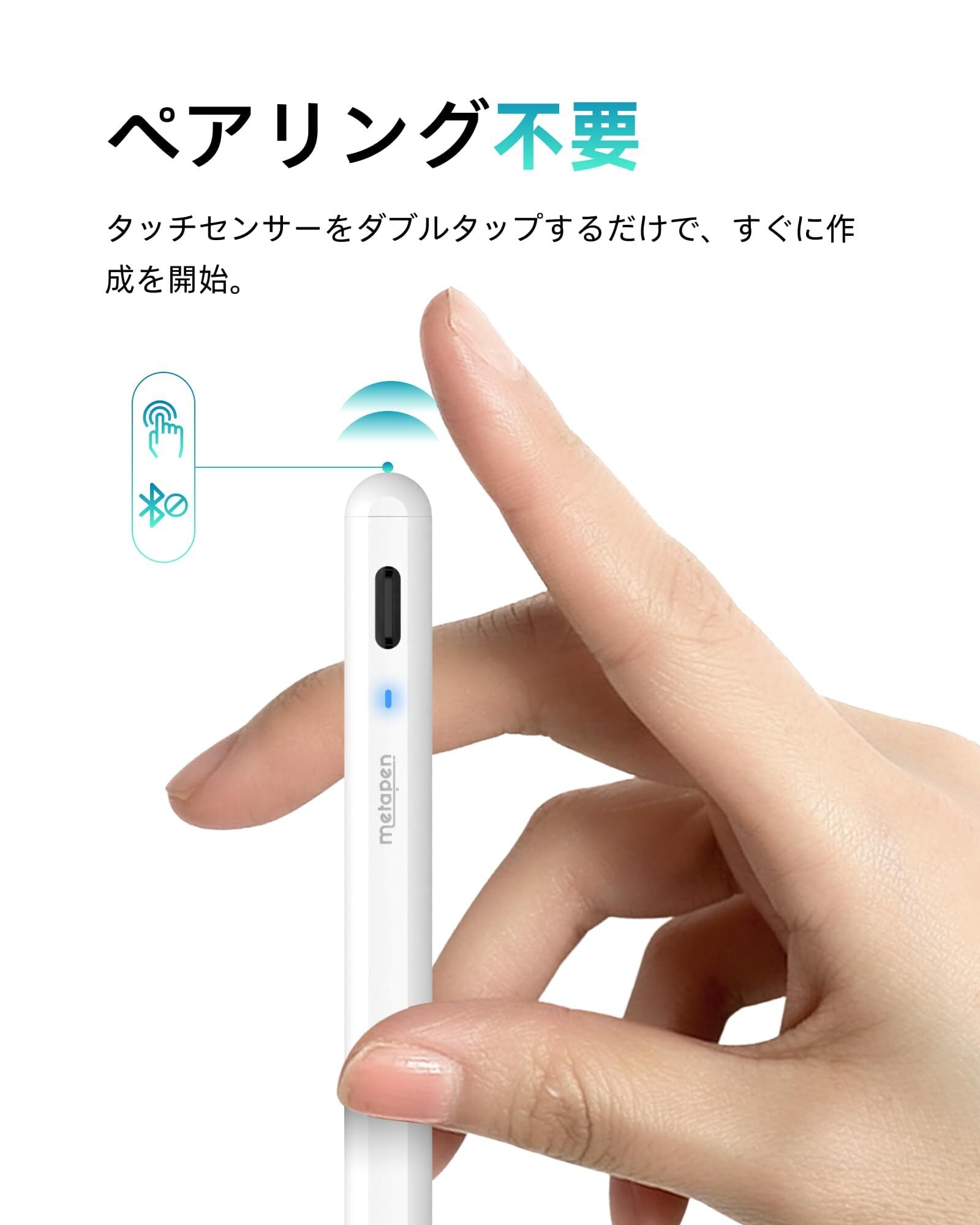 【使いやすさ& パームリジェクション& 磁気吸着機能】メタペン iPad ペン A8は、複雑なBluetoothペアリングが不要で、ペンの頭を2回タッチするだけで、すぐに使えます。パームリジェクション機能を搭載しており、デバイスの画面に手を置くことができ、長時間の作業でも腕が疲れません。磁気吸着機能があり、紛失を防ぎ、iPad側面にピタっとっついて収納・持ち運びに便利です。ご注意:磁気吸着機能対応: iPad Pro 12.9"、iPad Pro 11"、iPad Air 第4/5世代、iPad mini第6世代。磁気吸着機能非対応: iPad Pro 13/11 inch(M4)、iPad Air 13/11 inch(M2)、iPad第6/7/8/9/10世代、iPad Air第3世代、iPad Mini第5世代。