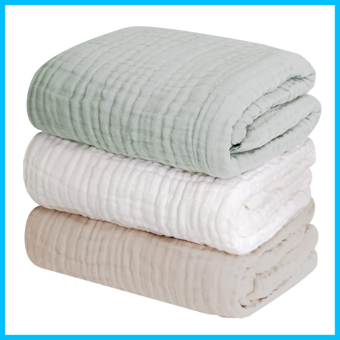 【素材】綿100%(6重ガーゼ) 【セット内容】グリーン・ベージュ・ホワイト各1枚 計3枚