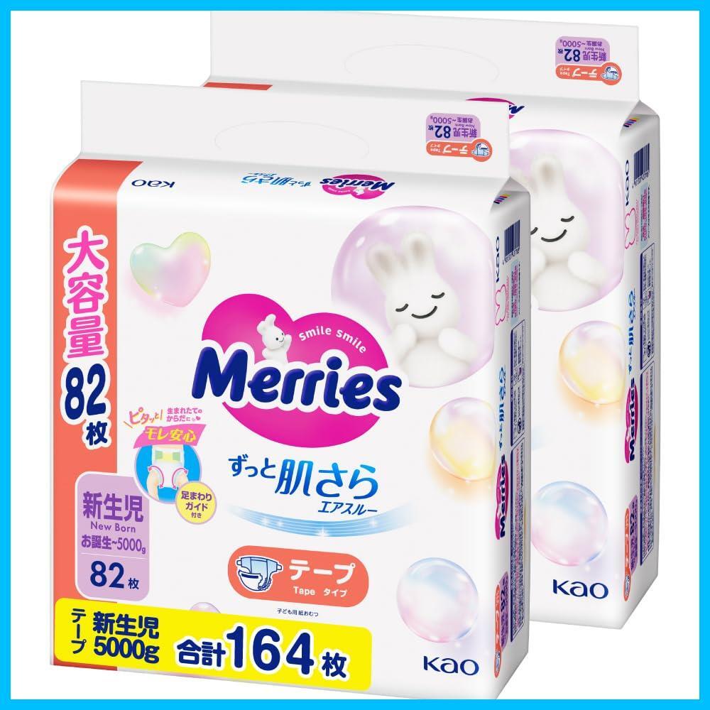 メリーズ Merries 【テープ 新生児用】 オムツ さらさらエアスルー (お誕生~5000g) 164枚 (82枚×2) [ケース品] 【 限定】