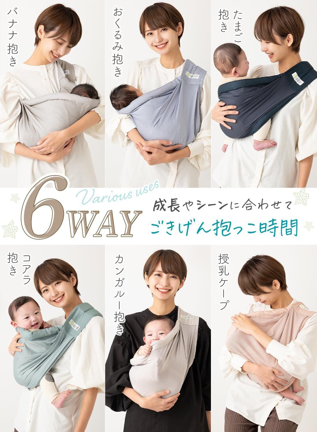 <Point.3 6WAYで使える> 赤ちゃんの成長や好みに合わせて、5通りの抱っこの仕方+授乳カバーとして使い分け可能!①ぎゅっと寄り添うぬくもりスタイル「バナナ抱き」②赤ちゃんすやすやゆりかごスタイル「おくるみ抱き」③ママと向かい合う「たまご抱き」④腰部分で抱っこする「コアラ抱き」⑤好奇心旺盛な赤ちゃんのための前向き抱っこ「カンガルー抱き」⑥おでかけ時の授乳タイムに「授乳カバー」