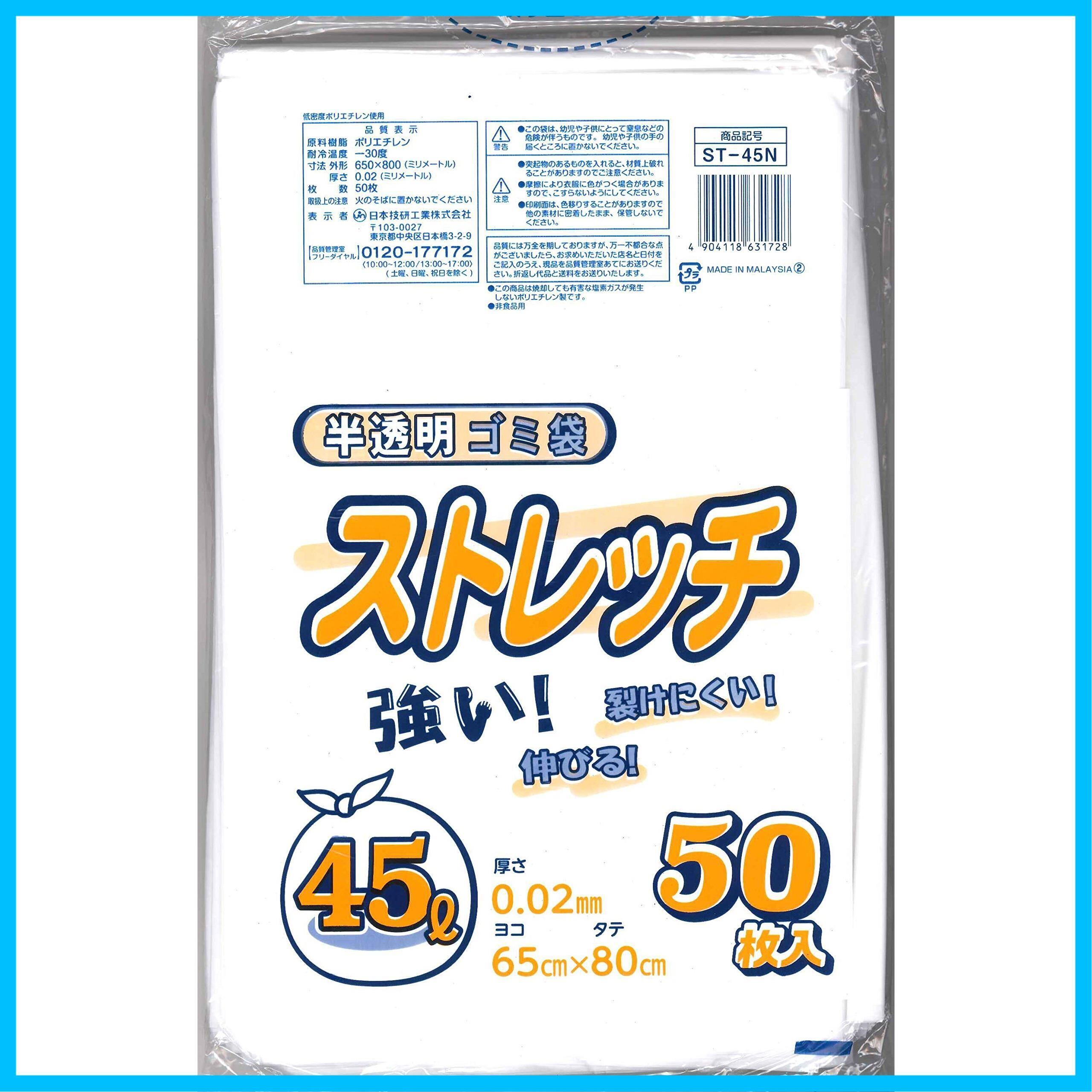 日本技研工業 ストレッチ ゴミ袋 半透明 乳白 45L 50枚入